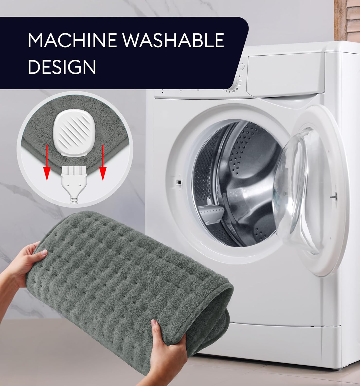 - ππππ πππππππππππ: Super easy to clean, our heating pad for bed is machine washable. Simply unplug and toss right in for a thorough cleansing before next use! You can also spot clean using a damp washcloth with mild detergent. Sanitizing has never been easier! The heating pad auto shut-off ensures your peace of mind after each use. No need to worry about forgetting to unplug.