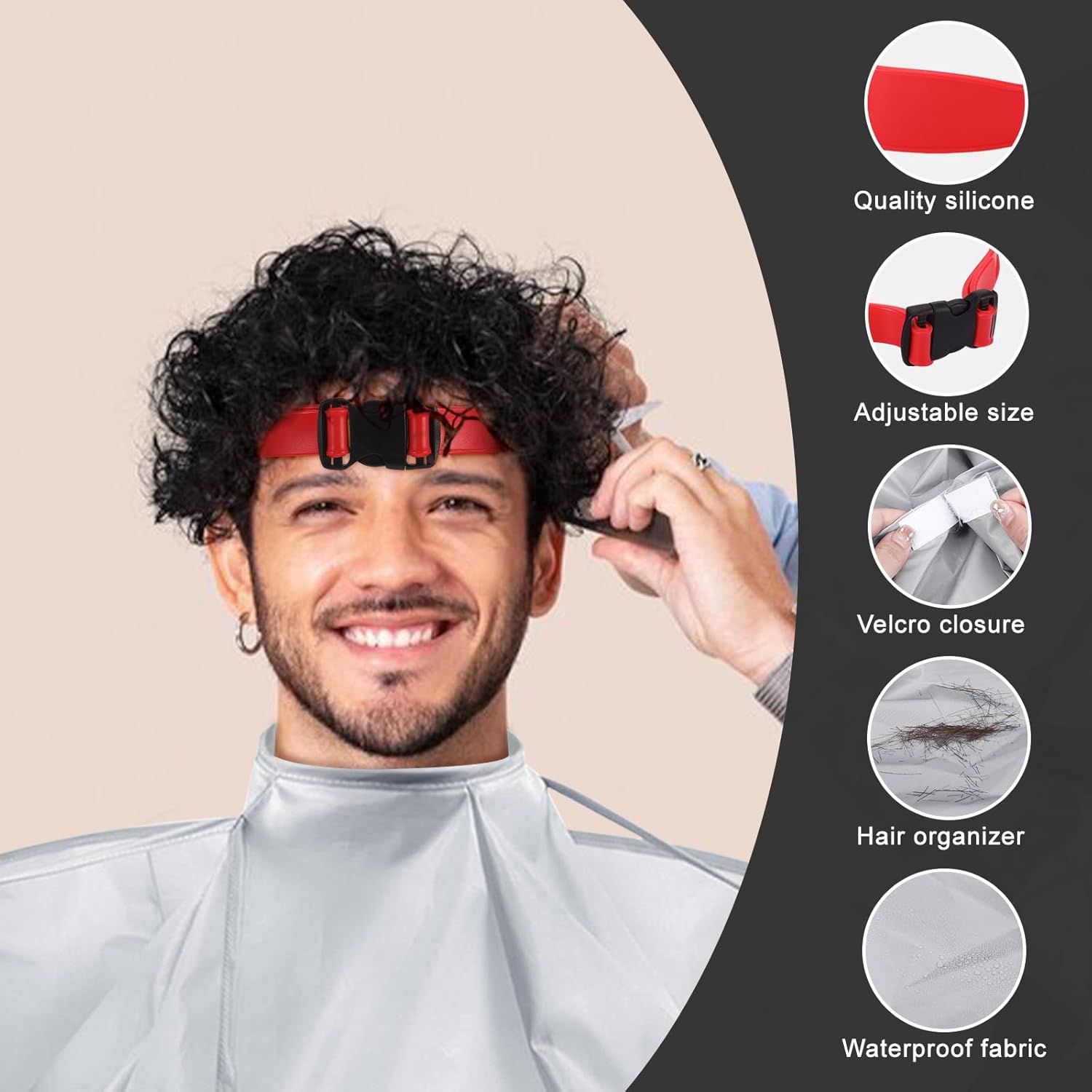 Fade Guide for Men Haircut, Self Haircut Kit for Men, Include Hair Cutting Guide & Cape Umbrella & Comb, Neckline Shaving Templat, DIY Hair Cutting Accessories Tools for Home (Red)