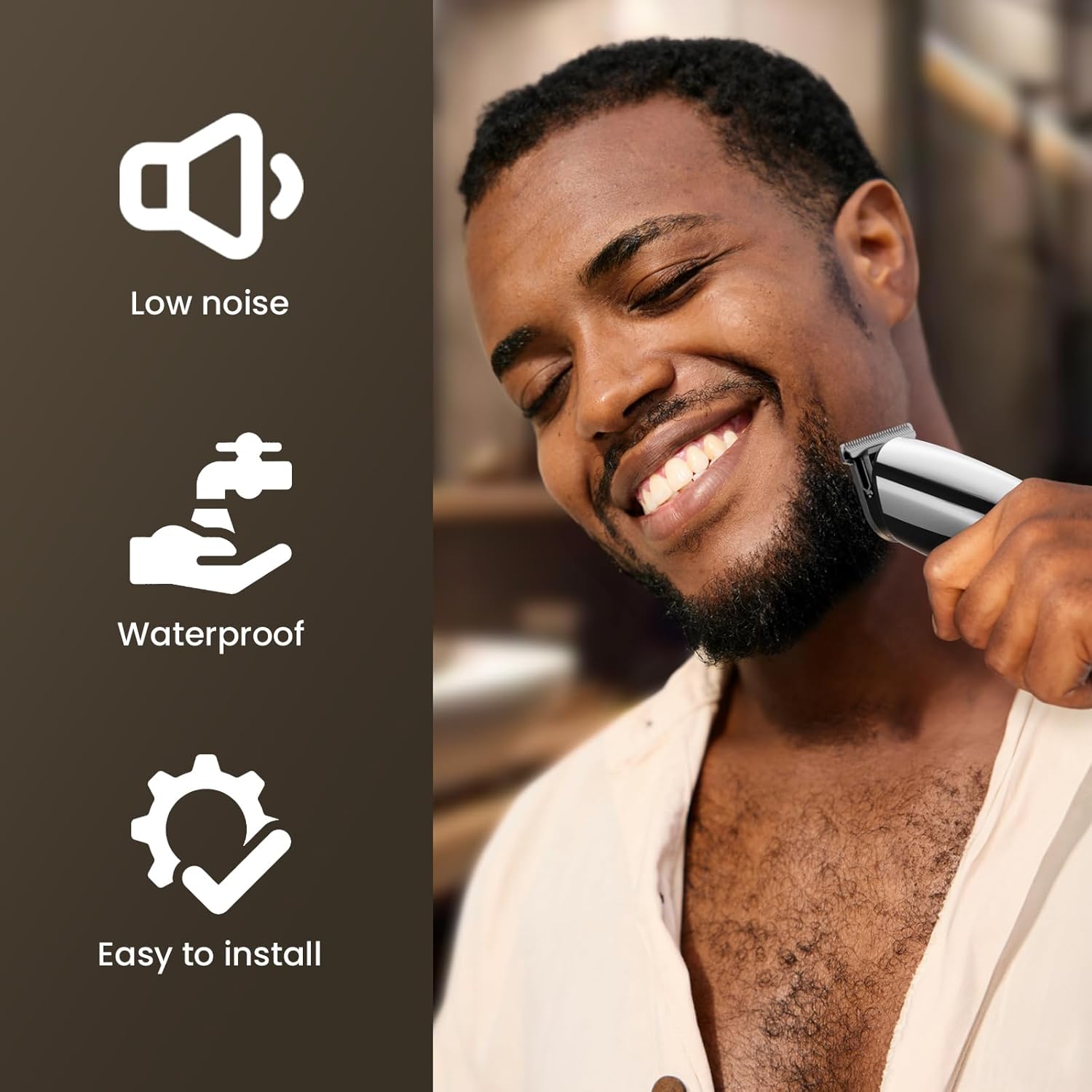 - All-in-one Grooming Kit: Our all-in-one grooming kit features 6 versatile trimmer heads designed for precise grooming. Whether youโre shaping your face, beard, mustache, nose hair, groin or other sensitive areas, this kit has you covered. It includes 4 guide combs (3, 6, 9, 12mm) and an adjustable sideburn comb, allowing you to achieve any hair style or beard length with ease. One device unlocks multiple professional grooming scenarios, helping you create an exquisite look in just 15 minutes.