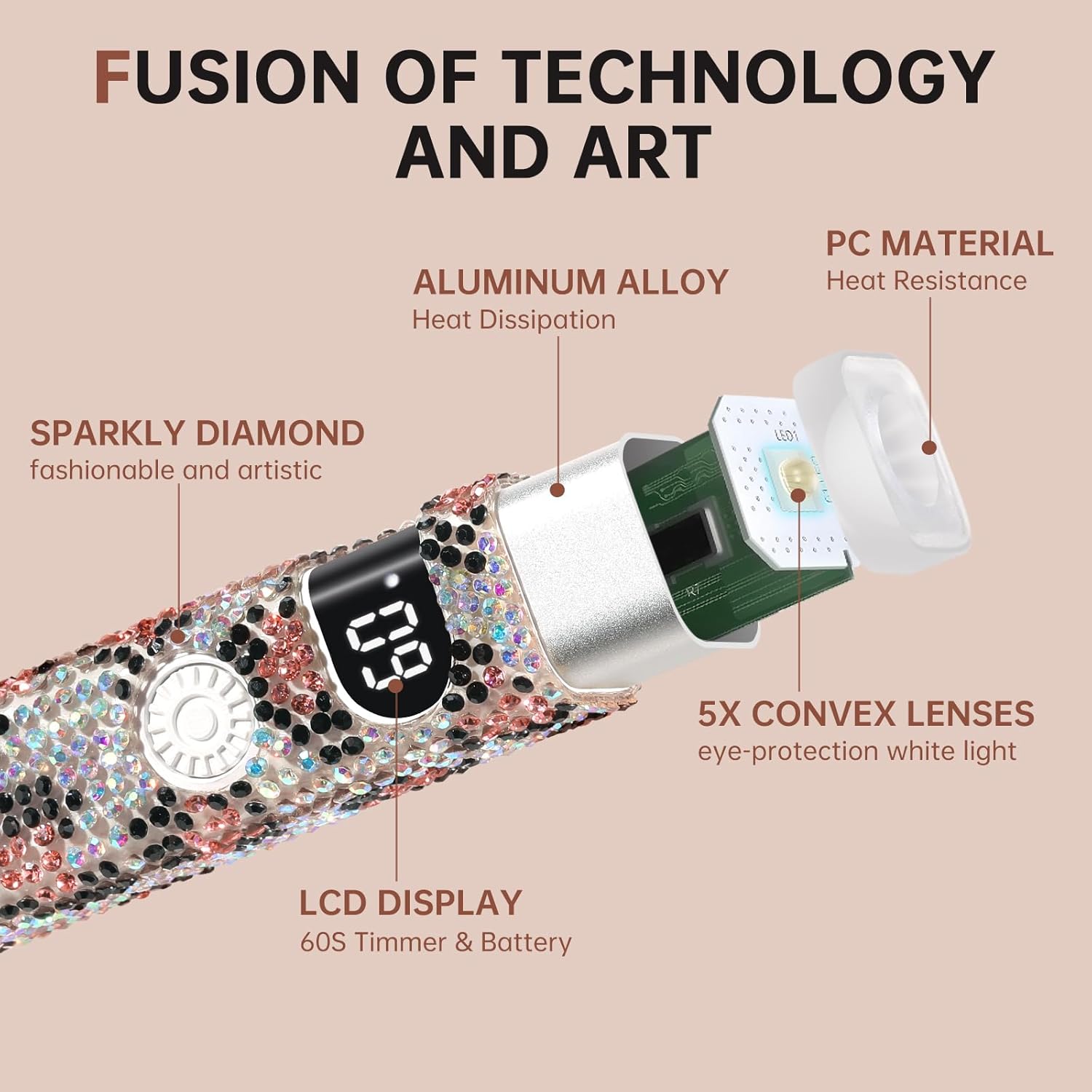 - 【Diamond Surface and 5X fast Curing】This uv nail light adopts an eye-catching shiny and fashionable diamond surface design.Equipped with high-quality lamp beads emitting 365 + 405nm and convex lens to achieve 5 times amplified spotlight, suitable for most gel nails and reduces curing time and ensures evenly curing from multiple angles