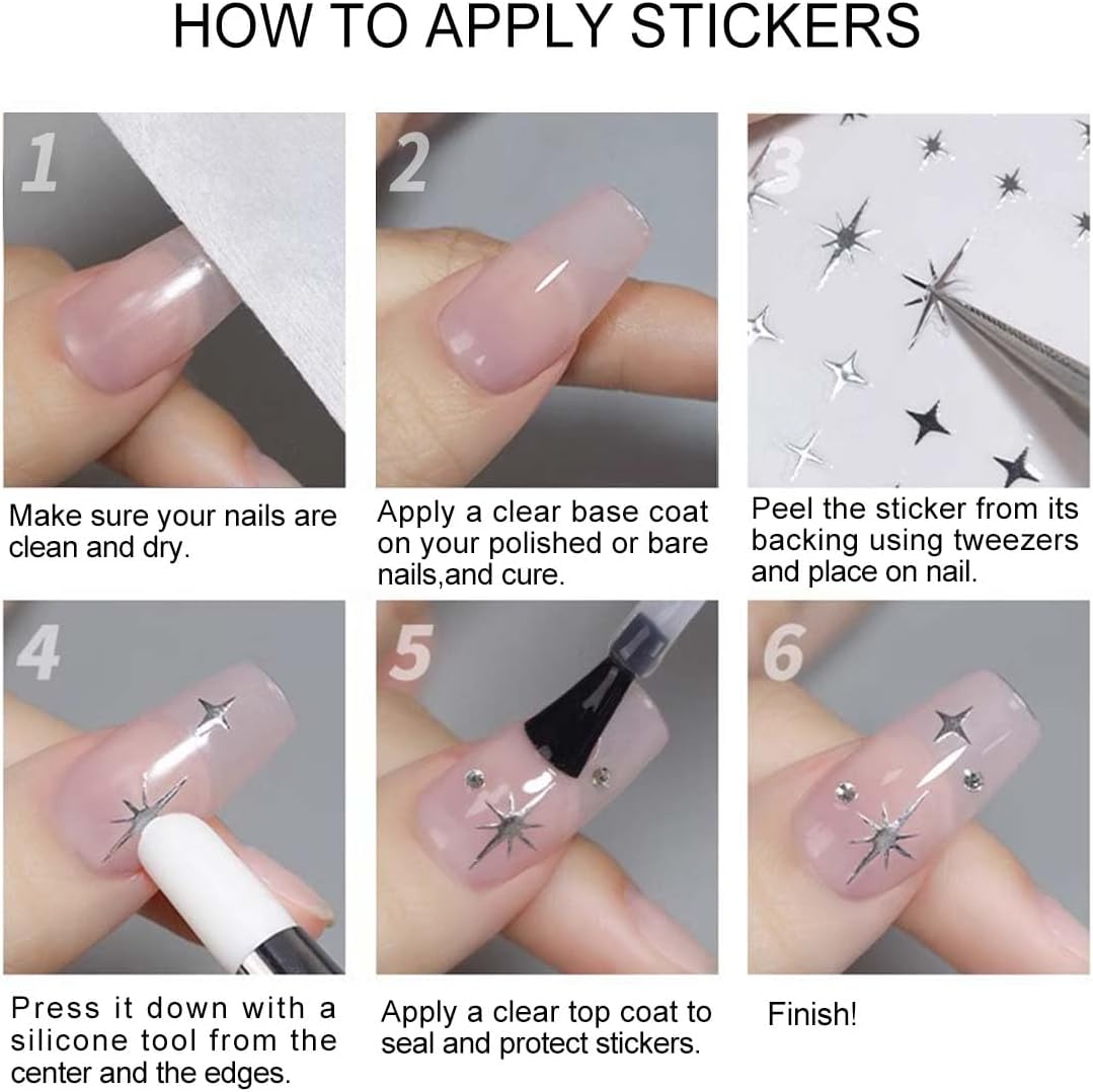 - Easy to use: Just stick gold star nail stickers on your nails, easy and time-saving(Tweezers work better here).Similarly, just peel off them if you want to remove them. You can use a layer of nail polish to fix for long-term lasting