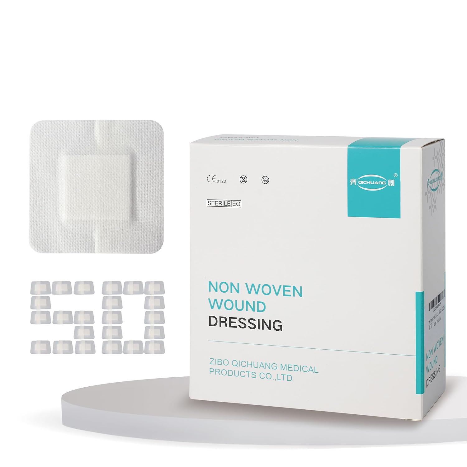 2X2 Inches Sterile Adhesive Island Wound Dressing Bandages - Non Woven Bordered Gauze Pads, 50 Individually Pack, Medical Grade by QICHUANG(2X2INCHES-C50)