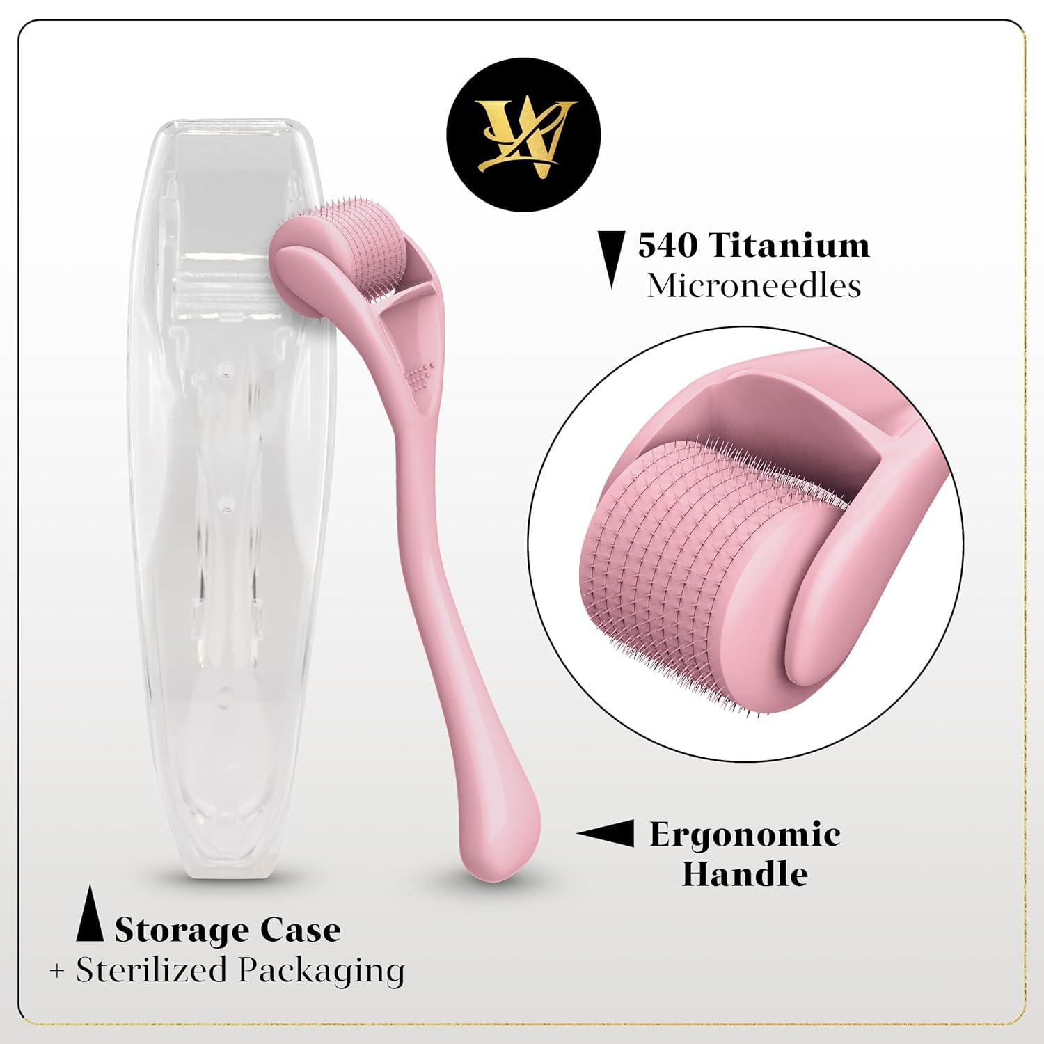 - Titanium Microneedling Roller – Sterilized & Durable – Made with 540 high-quality titanium needles, ensuring durability and safety. Includes a sterilized roller and storage case to keep it clean.