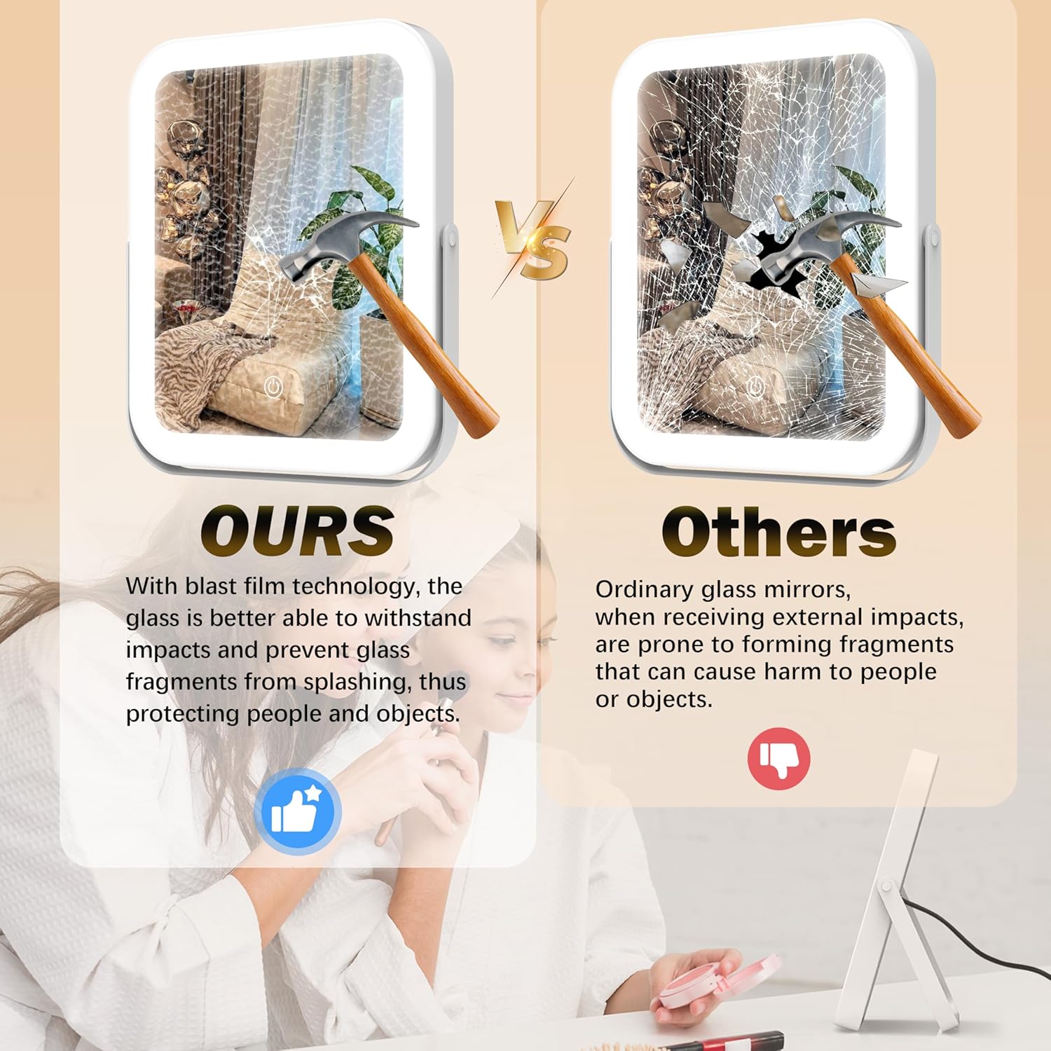 - ✈️【Compact. Lightweight. Ready to Go. 】 At just 8" x 10", this mirror is the perfect size for travel or your daily routine. Whether you're touching up before a meeting or freshening up on vacation, it fits easily in your bag and brightens your beauty routine—wherever life takes you.
