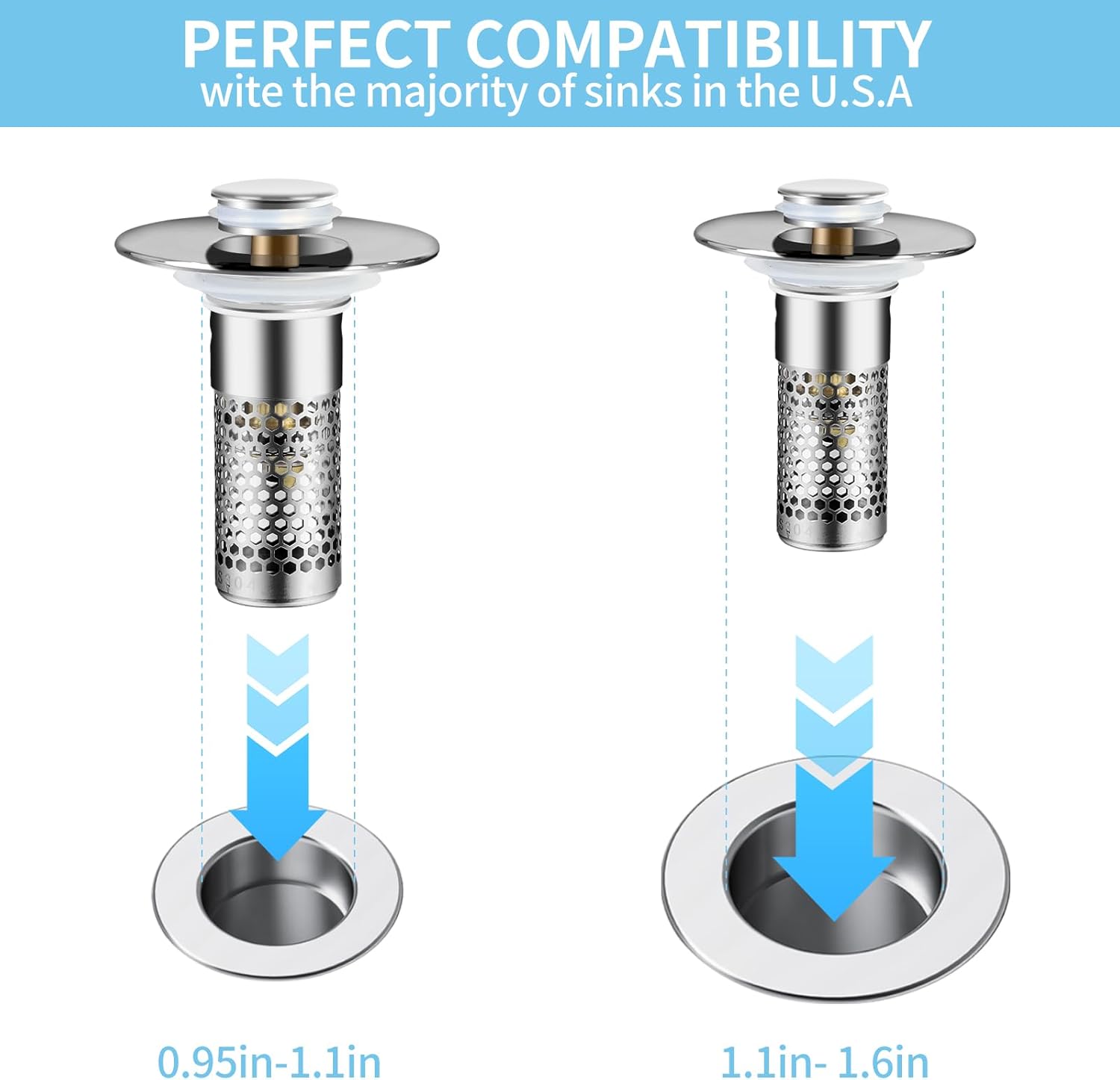 - SMART DESIGN: Made of premium copper and Plastic chrome plating, this drain plug has a surface that is both attractive and rust-resistant, keeping pests and odors at bay and covering rusty old sink drain surfaces. The innovative pop-up mechanism is dual-functional, switching between strainer and stopper modes at the push of a button, perfect for kitchen or bathroom use, giving you unrivaled convenience.