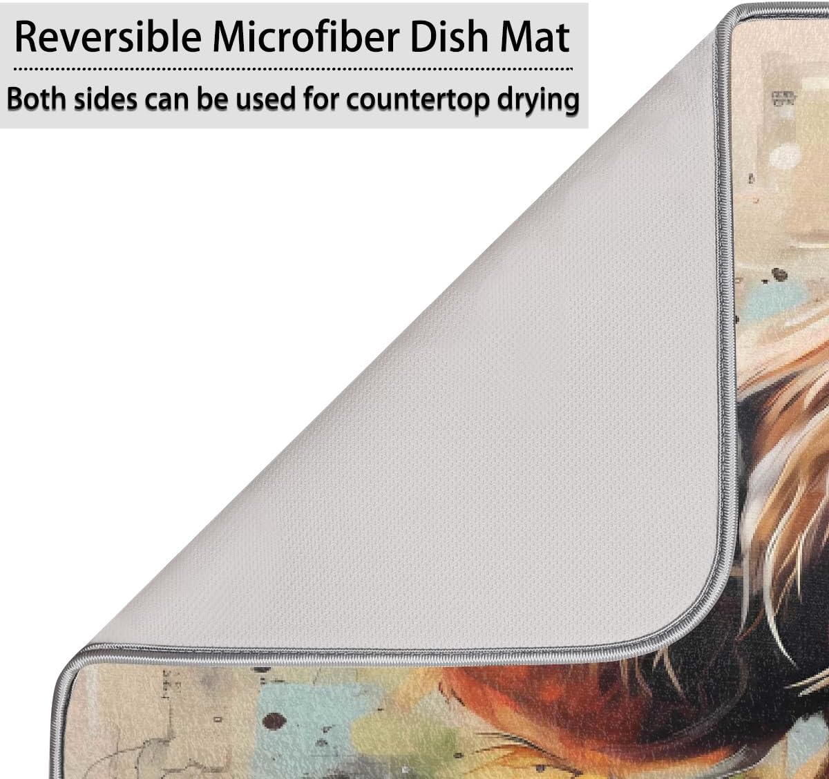 Dish Drying Mat Highland Cow Graffiti Floral Western Farm Large Drying Mat for Kitchen Counter 18x24in Absorbent Dish Drainer Rack Pad, Heat Resistant Coffee Bar Mats Countertop Protector