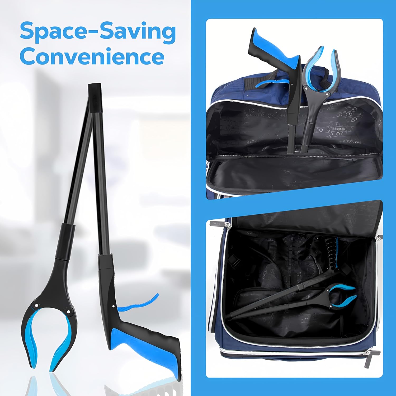 Grabber Reacher Tool - 32” Extra Long Foldable Gripper and Reaching Tool - Heavy Duty Pick Up Stick Grabbers for Seniors, Trash, Surgery Recovery Must Haves Gifts (Black Blue)