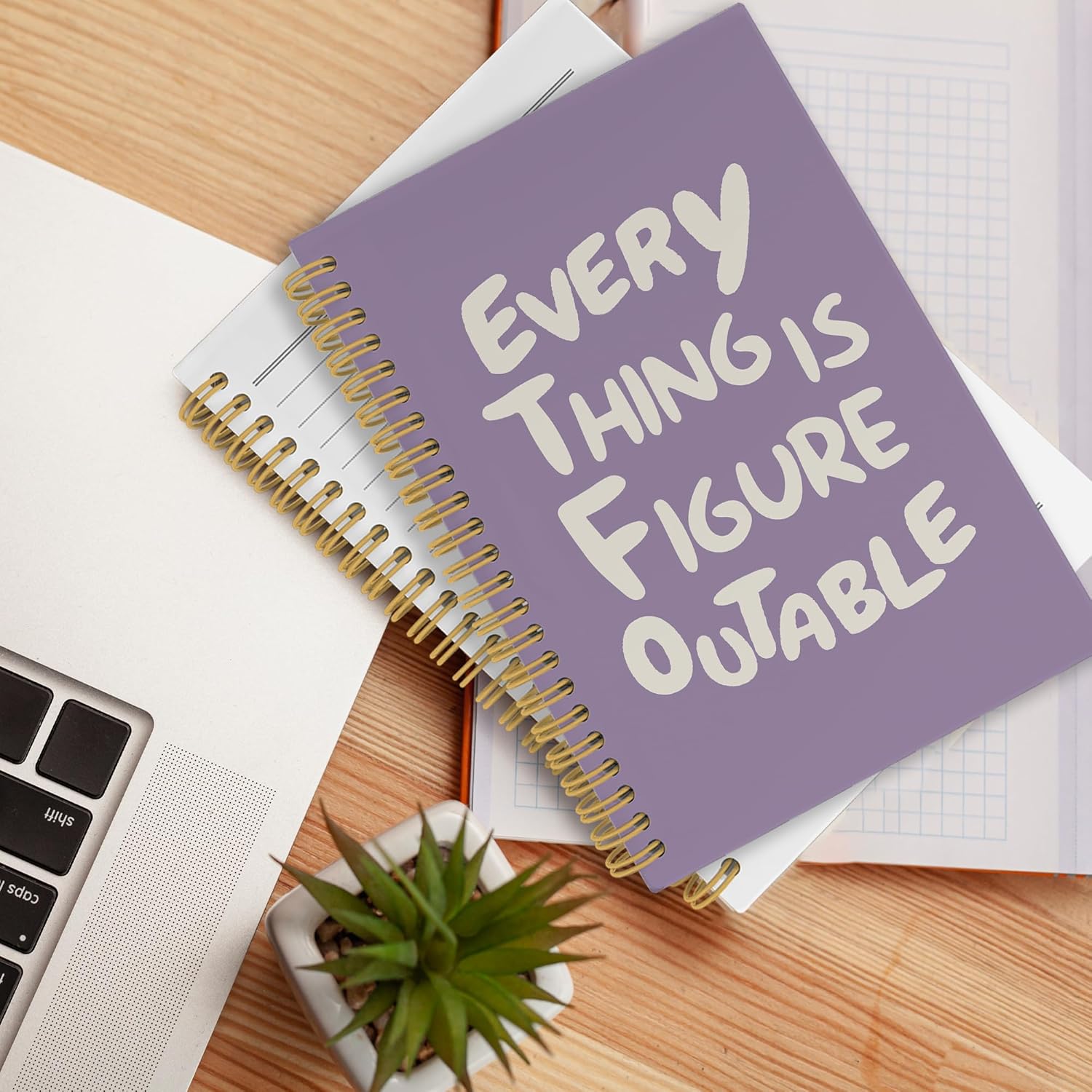 Inspirational Purple Notebook, Positive Affirmations Stress Relief Gifts, Office College Motivational Journal Notebooks, Everything Is Figureoutable Hardcover Spiral Notebook 5.5x8.3 Inch
