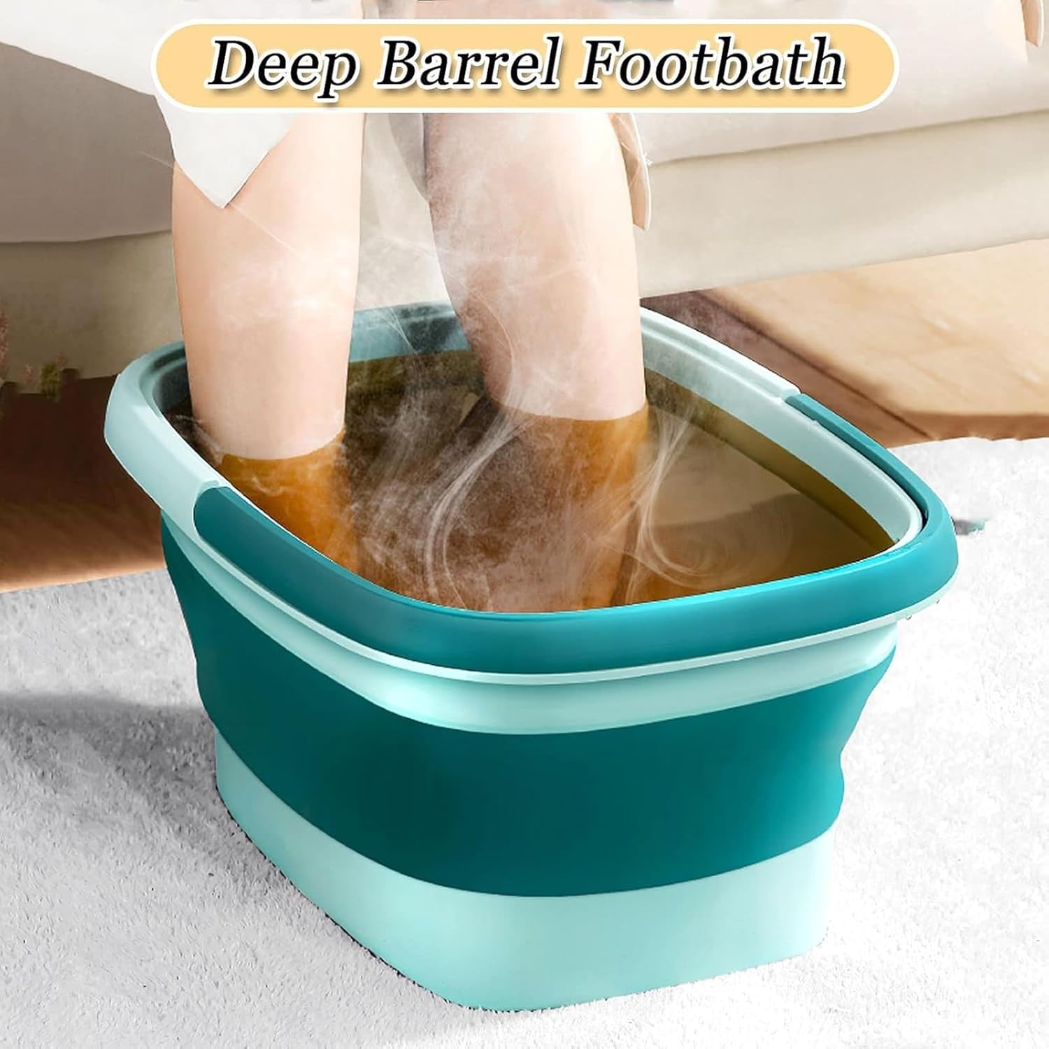 Collapsible Foot Spa Bath Massager for Dry Cracked Feet, Feet Soaking Tub with Massage Acupoint, Pedicure Foot Soak Basin Plastic Bucket with Handle(Green)