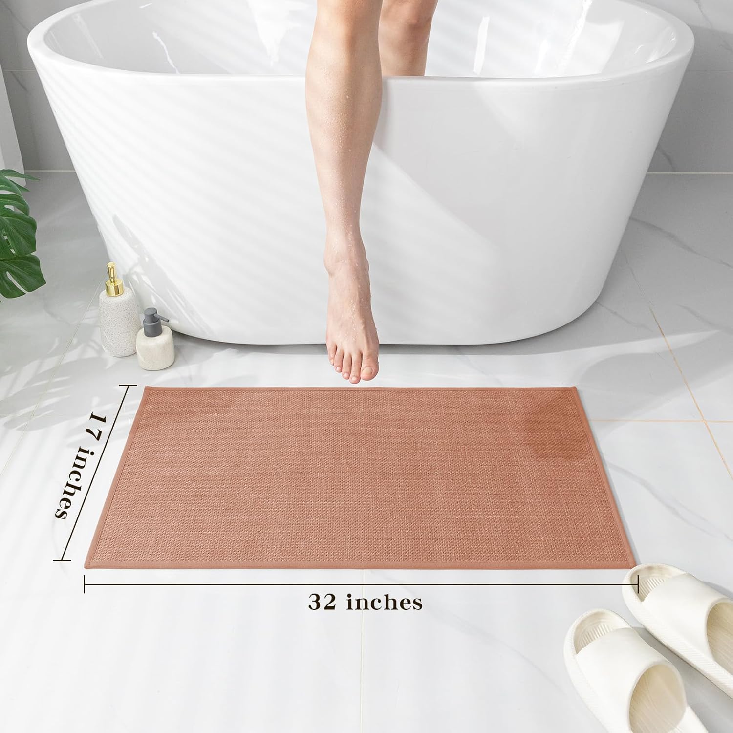 - 【Absorbing & Quick Drying】bathroom mat quick dry made of absorbent fabric that designed to dry quickly, absorbent bath mat can suck up dripping water quickly when you come out from bathtub or shower, and our fabric technique allows the rug to dry fast in the open air, bring you a dry and comfortable bathroom
