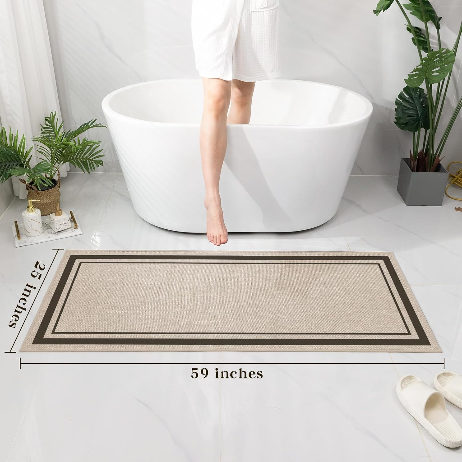 chakme Bathroom Rugs Mat 59x24, Ultra Thin Non Slip Bath Mat Large Quick Dry Absorbent Bath Mat for Bathroom Floor, (Light Beige, 59"x24")
