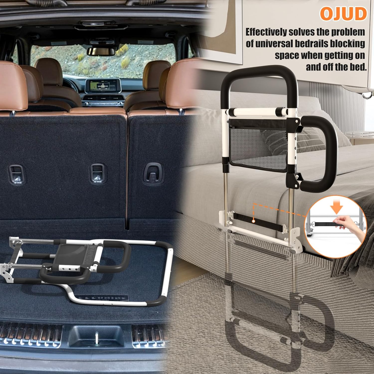 - DUAL GRAB BAR,NON-SLIP BOTTOM,EASY INSTALLATION: Practical dual grab bar design, flat tube and three sponges at the bottom of the bedrails can effectively prevent sliding.Assembly can be completed by installing only 4 screws.