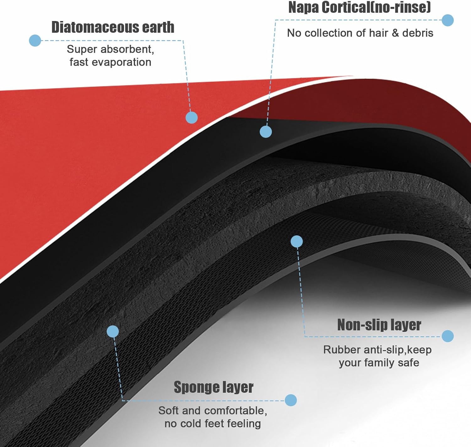 Diatomaceous Earth Bath mat Bathroom Rugs Super Absorbent Quick Dry Non Slip Bath Mat Thin Bathroom Floor Mats Fit Under Door-Shower Rug for in Front of Bathtub Shower, Red, 23.6"x66.9"