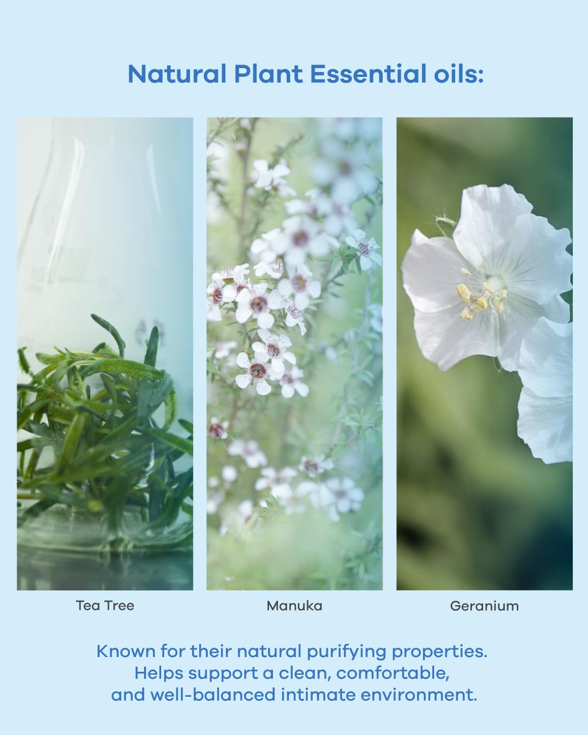 - Nature-Derived Essential Oils: Formulated with Australian tea tree, manuka, and geranium essential oils. These botanical ingredients help maintain a healthy balance in intimate areas and support a fresher, more confident feeling.