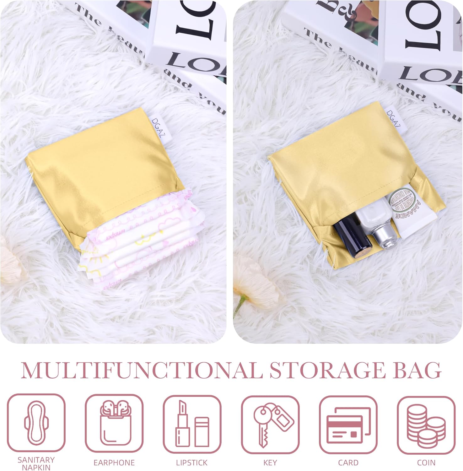 DGAZ Silk Sanitary Napkin Storage Bag, Period Bags for Teen Aged Girls, Portable for Panty Liners/Menstrual Cup/Small Tampons,Mini Makeup Bags for Purse(Mimosa)