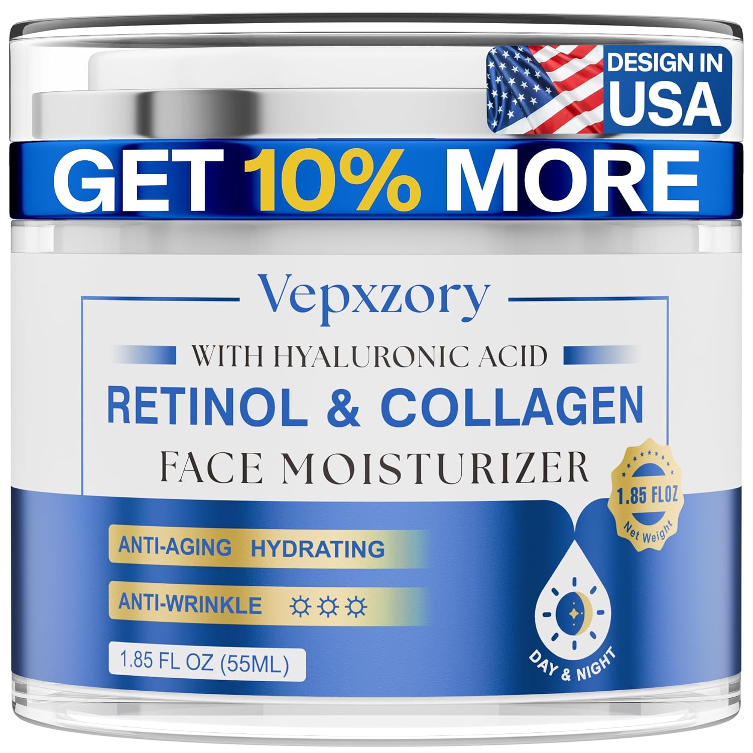 - Face Moisturizer for Women: Experience the power of moisturizer face cream for women with Collagen, 1% Retinol, and Hyaluronic Acid. Our wrinkle cream formula has been carefully refined to support the skin’s natural barrier and provide hydration for improved comfort. Designed to help reduce the appearance of dryness and fine lines, it leaves the skin feeling soft, smooth, and healthy-looking.