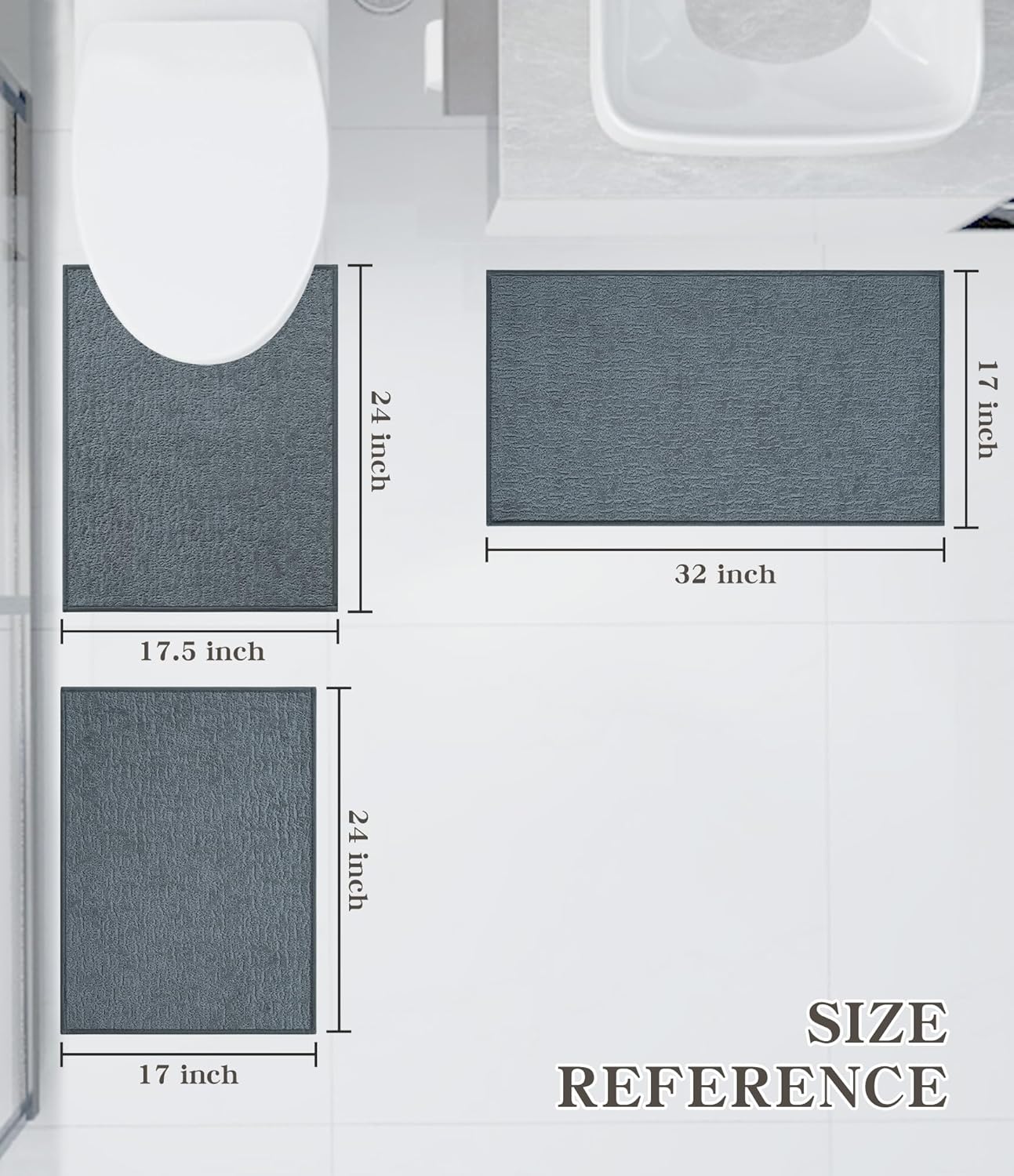 chakme Bathroom Rug Sets 3 Piece, Ultra Thin Bath Mat Quick Dry Bath Mat Set, Absorbent Bath Mat for Bathroom Non Slip Machine Washable, (Light Blue, 3 Piece)