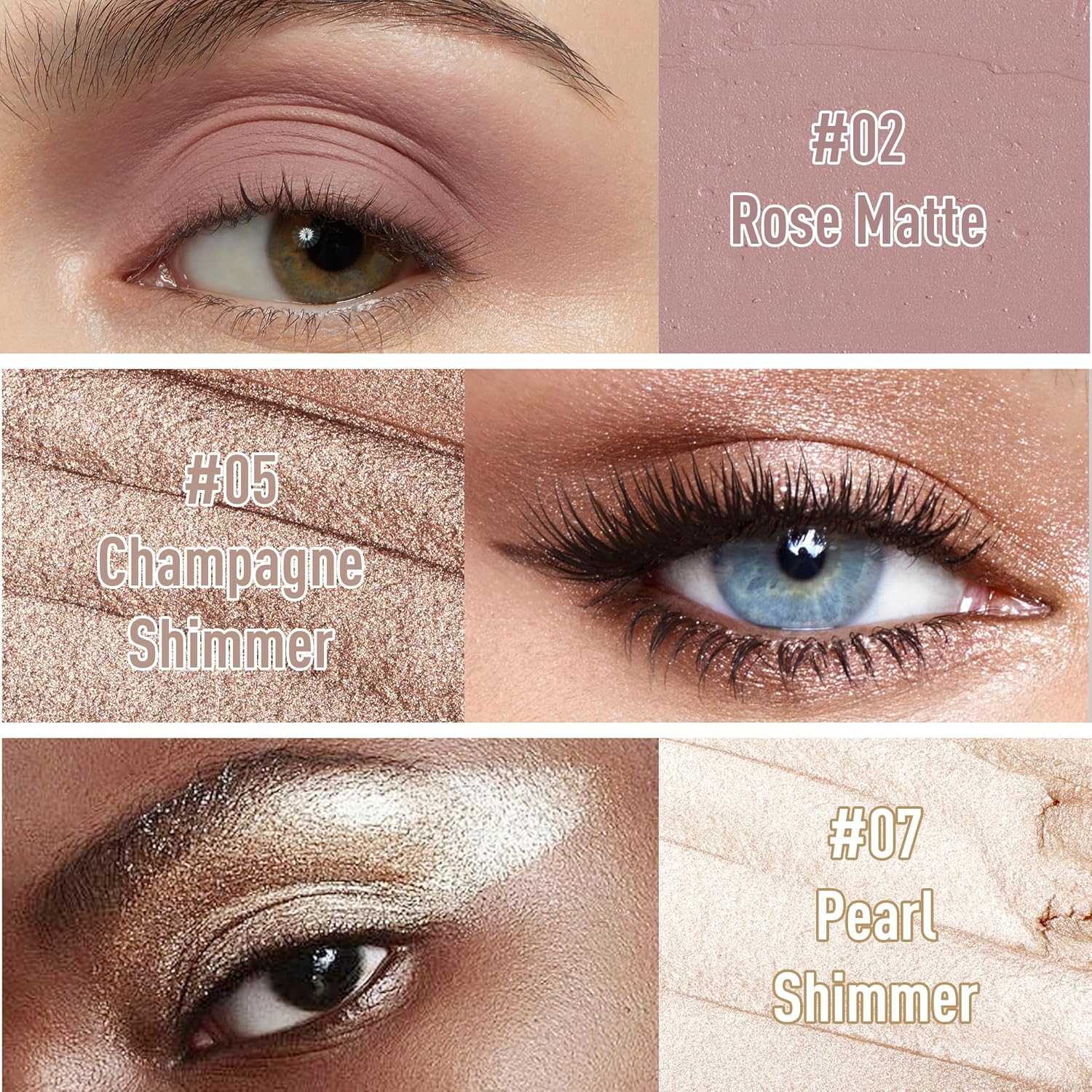FV Waterproof Eyeshadow Stick Duo,Long-Lasting Cream Eye Shadow Makeup Sets, High Pigmented Eyeshadow Pencil with Matte & Shimmer Finish, Natural Look (Rose & Pearl)