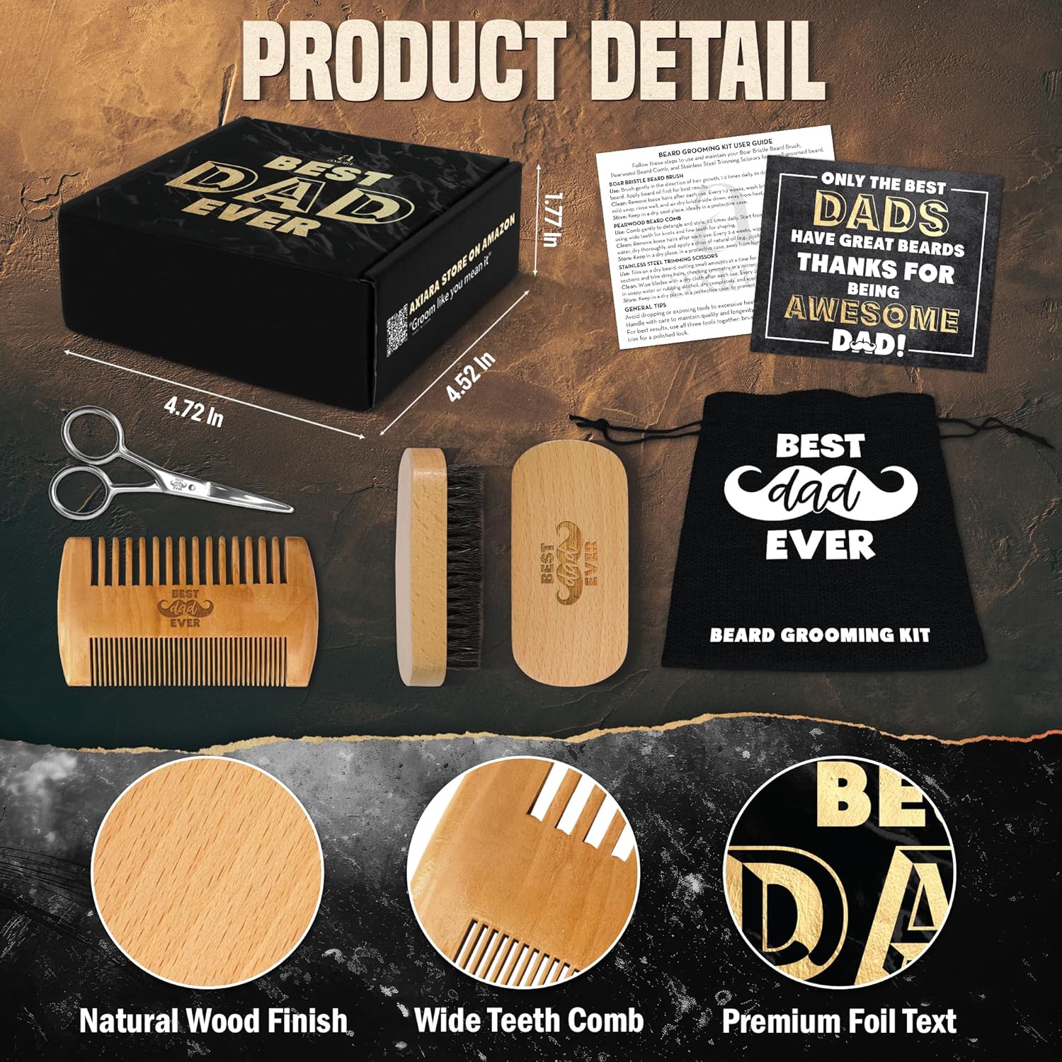 - FATHERS DAY GIFTS FOR DAD - Surprise your dad with this thoughtful Fathers Day gift that speaks volumes. This beard grooming set includes a boar bristle brush, pearwood comb, and stainless scissors, making it perfect for Fathers Day gifts from daughter wife kids. A unique pick for funny Fathers Day gifts, Fathers Day gifts from son, Fathers Day card, or happy Fathers Day card gifts, it’s a daily reminder that he's the best.