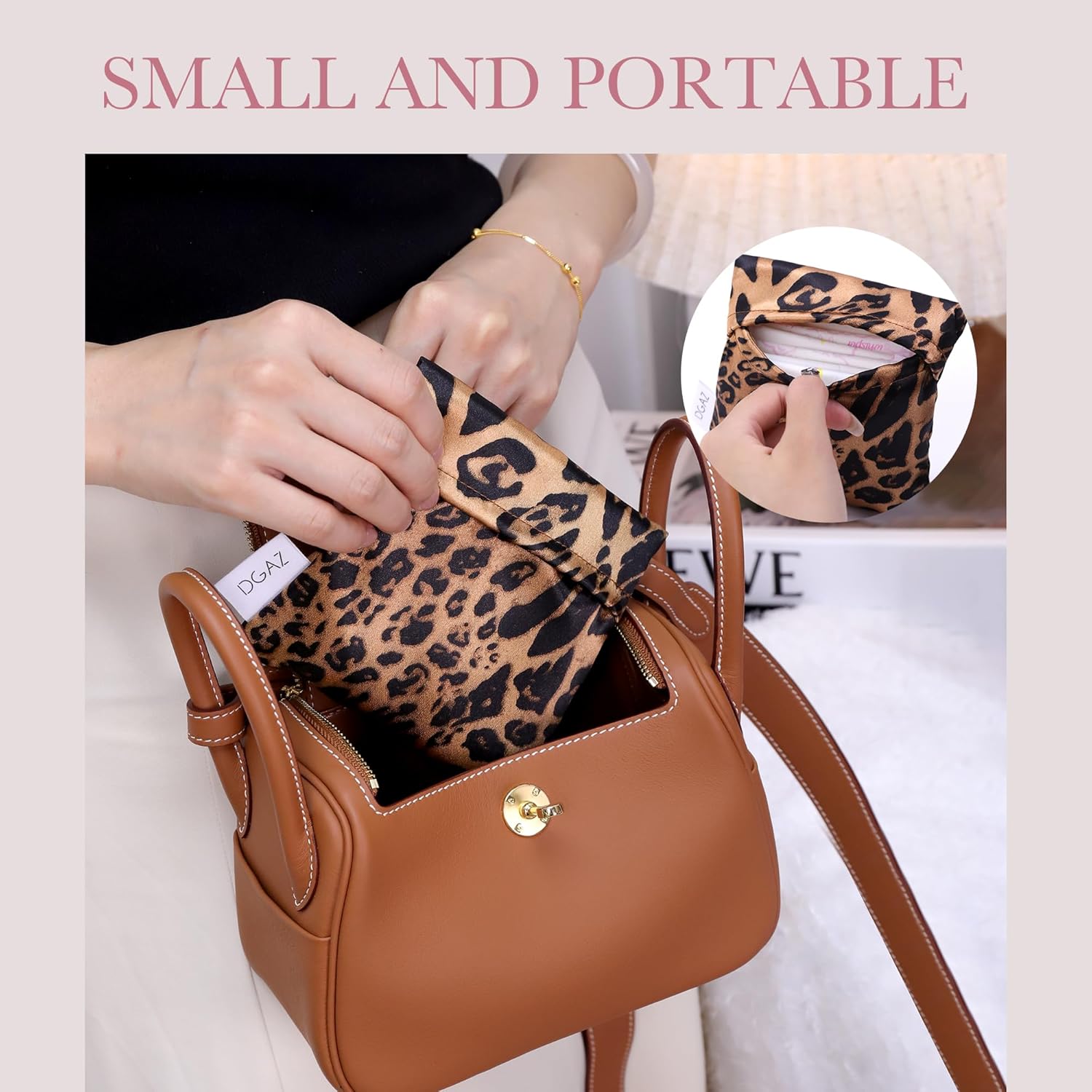 DGAZ Sanitary Napkin Storage Bag, Period Bag for Teen Aged Girls, Portable Period Bag for Panty Liners/Menstrual Cup/Small Tampons,Mini Makeup Bag for Purse(Leopard B)