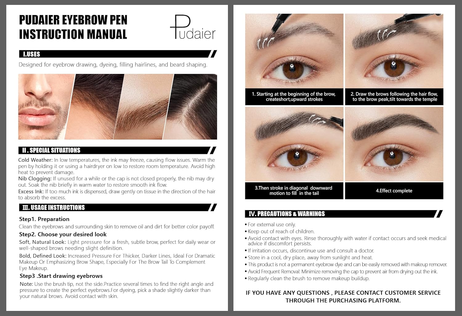 - Long Lasting Formula: Experience the power of a long-lasting formula that withstands busy days and nights out. Our liquid eyebrow pencil provides enduring color that won't fade, allowing you to go about your day with worry-free elegance;