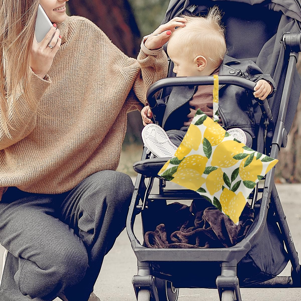 2Pcs Lemon Orange Print Wet Bags, Wet Dry Bag Reusable for Swimsuit, Travel, Diapers, Beach, Dirty Yoga Gym Clothes, Toiletries, Makeup Bag, Waterproof Birthday Christmas Gifts