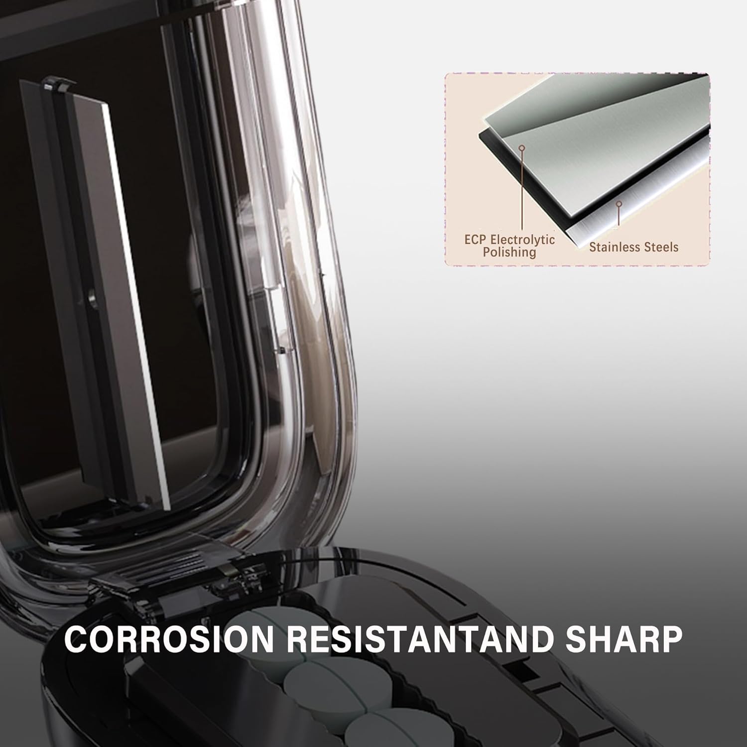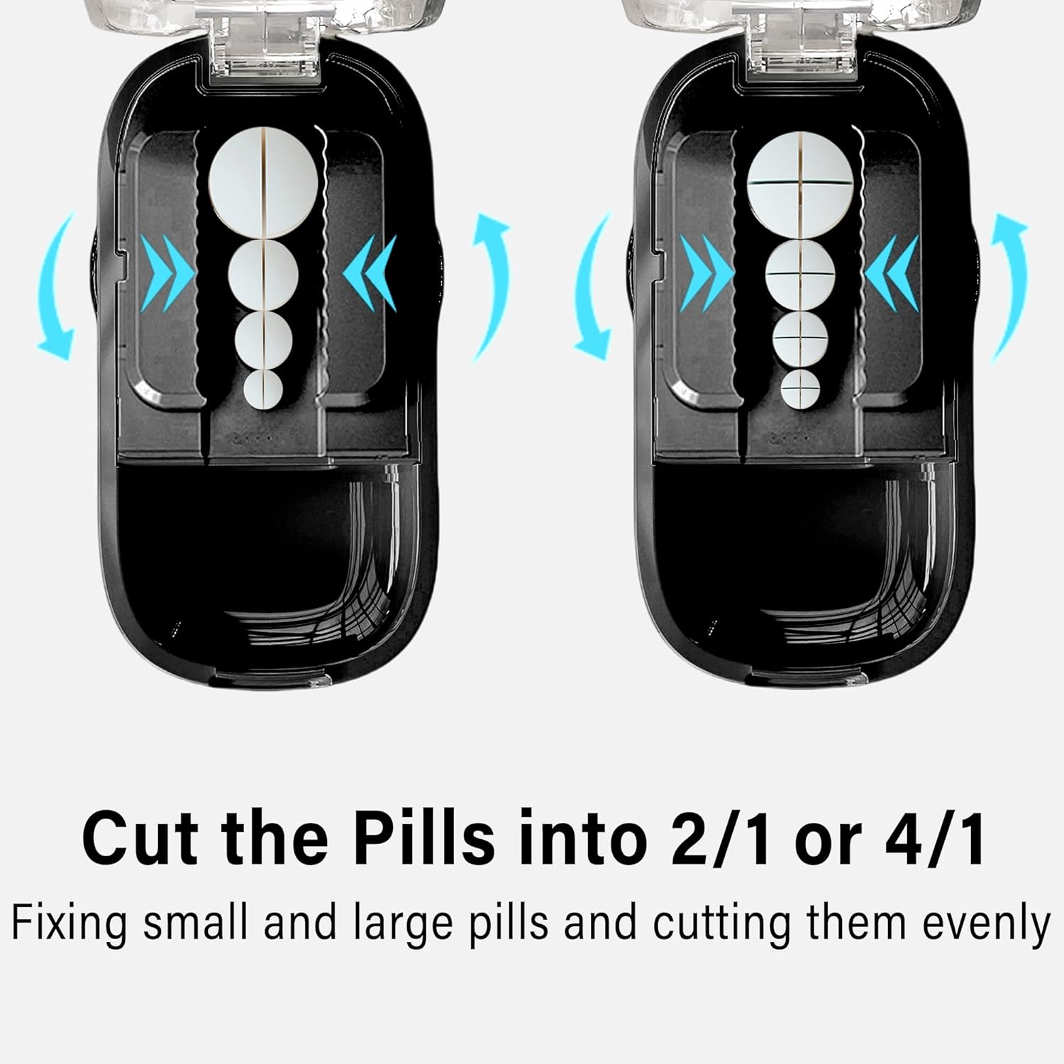 - 【Clear Cut】This pill cutter for small and large pills professional is made of sharp stainless steel blades with EPC electrolytic polishing process, which ensures clear and neat cutting of pills every time