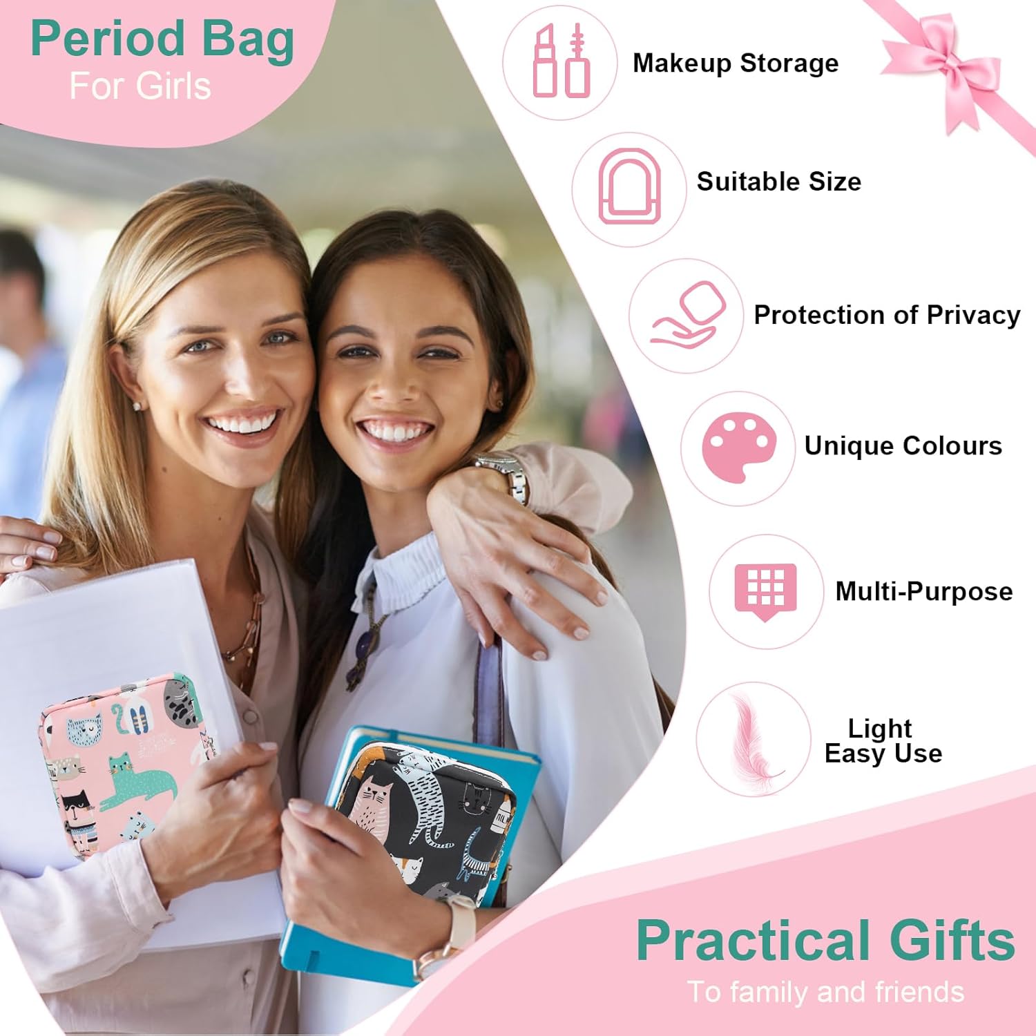 - 💕 【Wide Application】- Not just period bags for teen girls, they are also suitable for women in office or mothers. Ideal for storing sanitary napkins, tampons with applicators, panty liners, small individual cleaning pkts, reusable pads and more. Nice period bag for purse. Very convenient for office, business trip, shopping and travel.