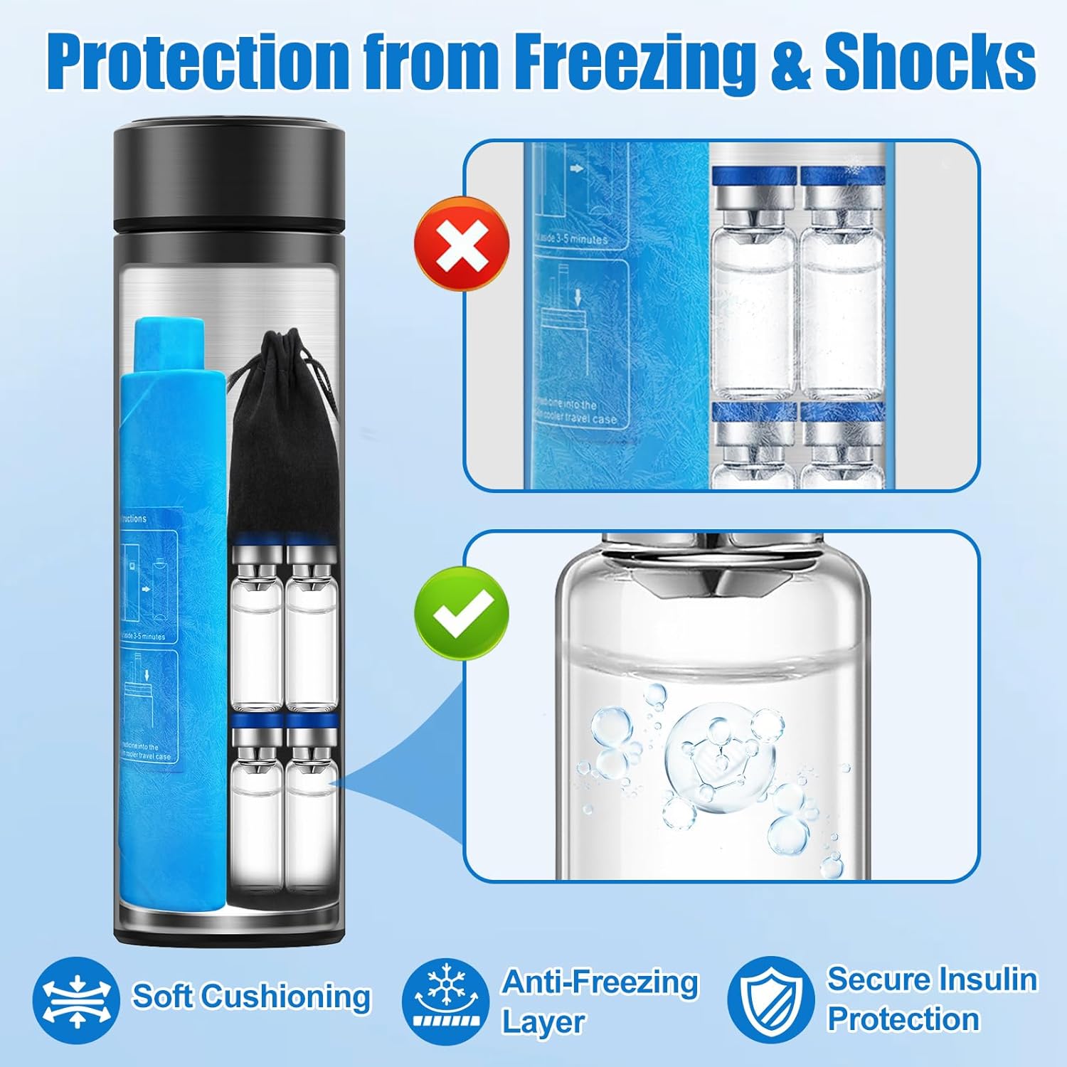 - 【60-Hour Insulin Cooler for Travel and Daily Use】 - This insulin travel case keeps your medications cool for up to 60 hours using advanced vacuum insulation and bio-gel ice packs. Ideal for long trips, outdoor activities, or extended business travel – your insulin stays effective and safe