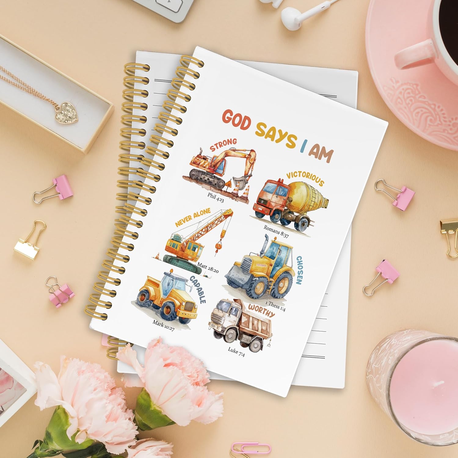 XPH Christian Construction Spiral Notebook, God Says I Am Bible Journaling Notebooks for Note Taking, Religious Hardcover Journal for Writing 160 Pages 5.5 x 8.3 Inch, Christian Gifts for Women Men