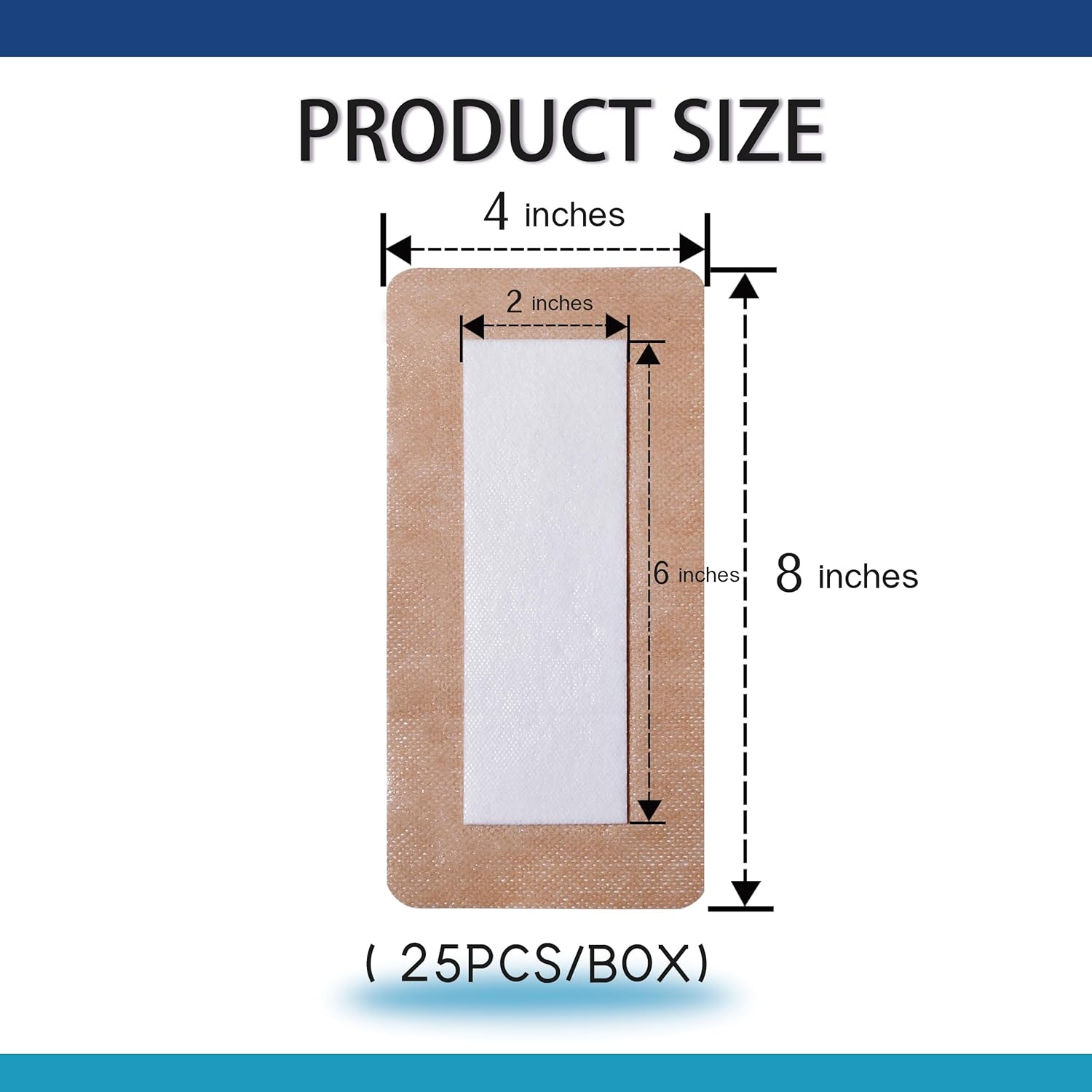 4"X8" 25 PCS Extra Large Sterile Nude Island Dressing Bandage for Wound - Self-Adhesive Boarded Gauze Pads - Latex Free - Medical Grade (Nude, 4"X8"-25PCS)