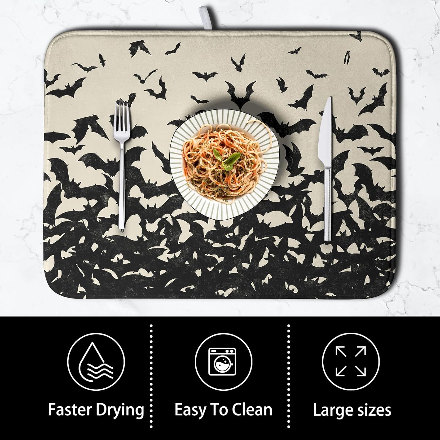Halloween Bats Halloween Dish Drying Mat for Kitchen Counter 18x24 Inch Microfiber Absorbent Drying Mats Washable Dishes Drainer Mats Reusable Dish Rack Pad for Coffee Bar