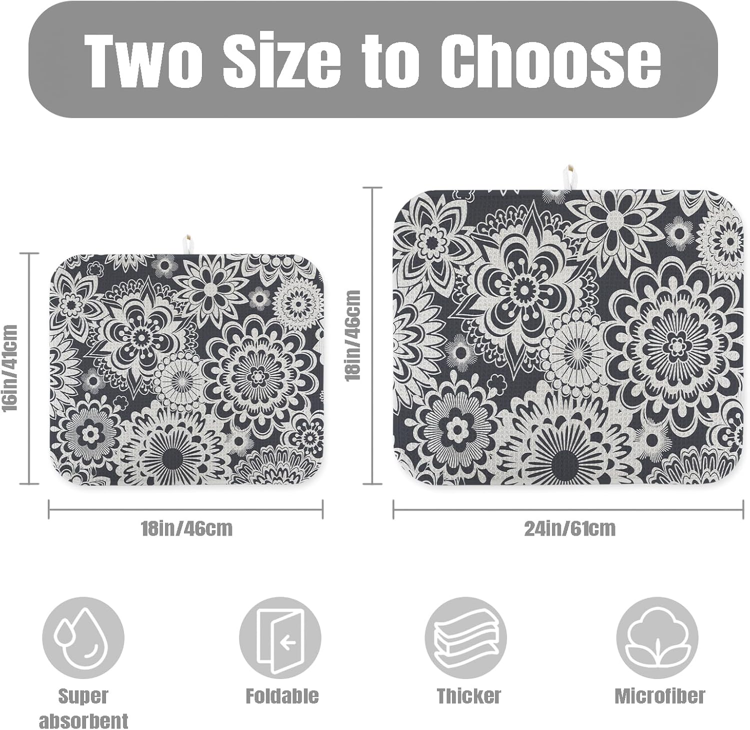 Dish Drying Mat for Kitchen Counter Large 16" x 18" Mandala Absorbent Microfiber Dishes Drainer Rack Mats Pad Reusable Washable