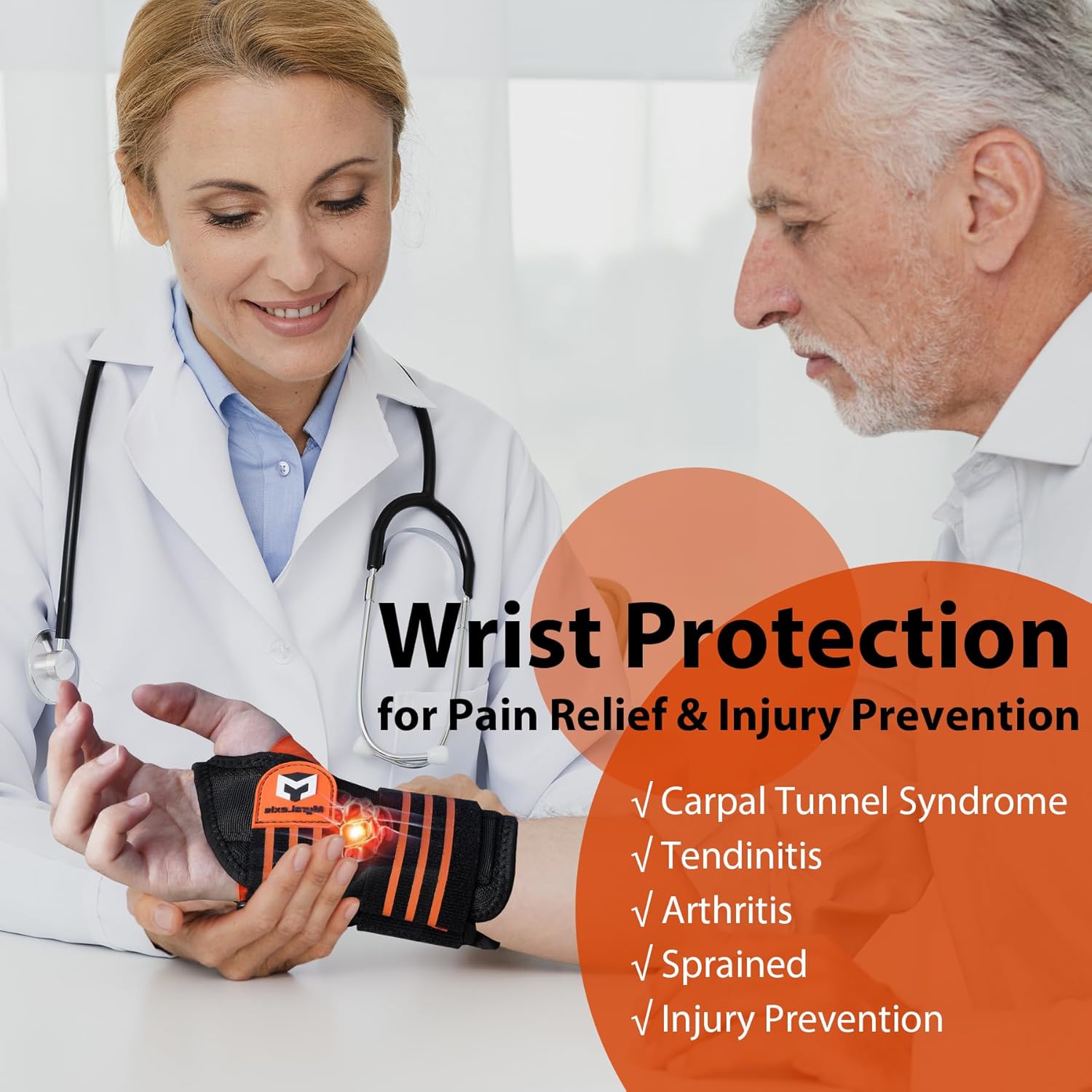 - 【Maximum Ergonomic Support for Wrist Pain Relief】 This wrist support braces has been fully upgraded in structure and comfort, providing all-day pain relief for issues such as carpal tunnel syndrome, tendonitis, arthritis, and sprains. It features a built-in removable ergonomic aluminum splint and two flexible support bars, effectively keeping the wrist in a natural neutral position, reducing pressure, preventing overuse, and speeding up the recovery process. It can be worn comfortably during work or even while sleeping.