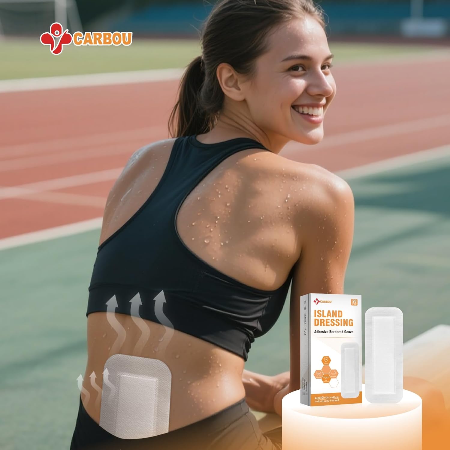 Carbou Island Dressing Bordered Gauze 4"x10" - 25 Sterile Individually Wrapped Pads | Non-Stick Center with Water-Resistant Adhesive Border | Medical Grade Non-Woven Backing for Wound Care & First Aid