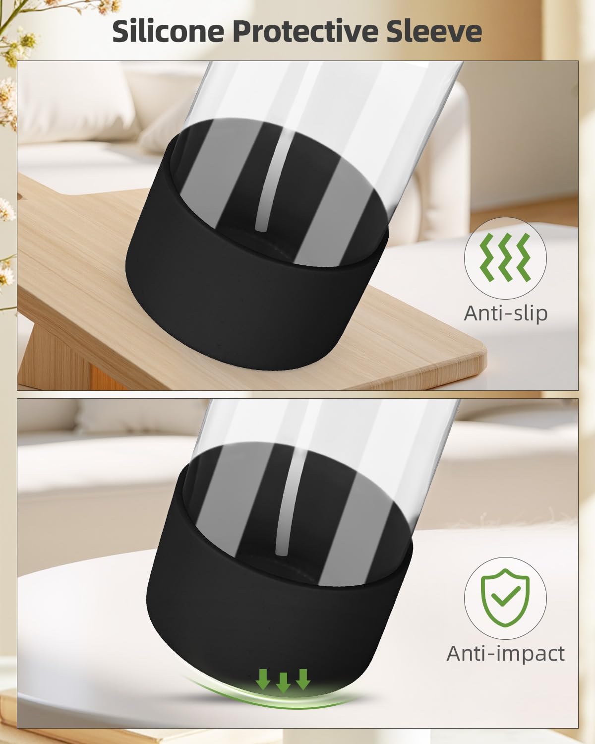 • Premium Glass & Sturdy Silicone Sleeve: Crafted from high-transparency glass, our glass cleaning bottles offer a clear view of liquid levels, ensuring effortless monitoring and usage. The included silicone sleeve ensures minimizing the risk of breakage and slips, making it safe for daily use.