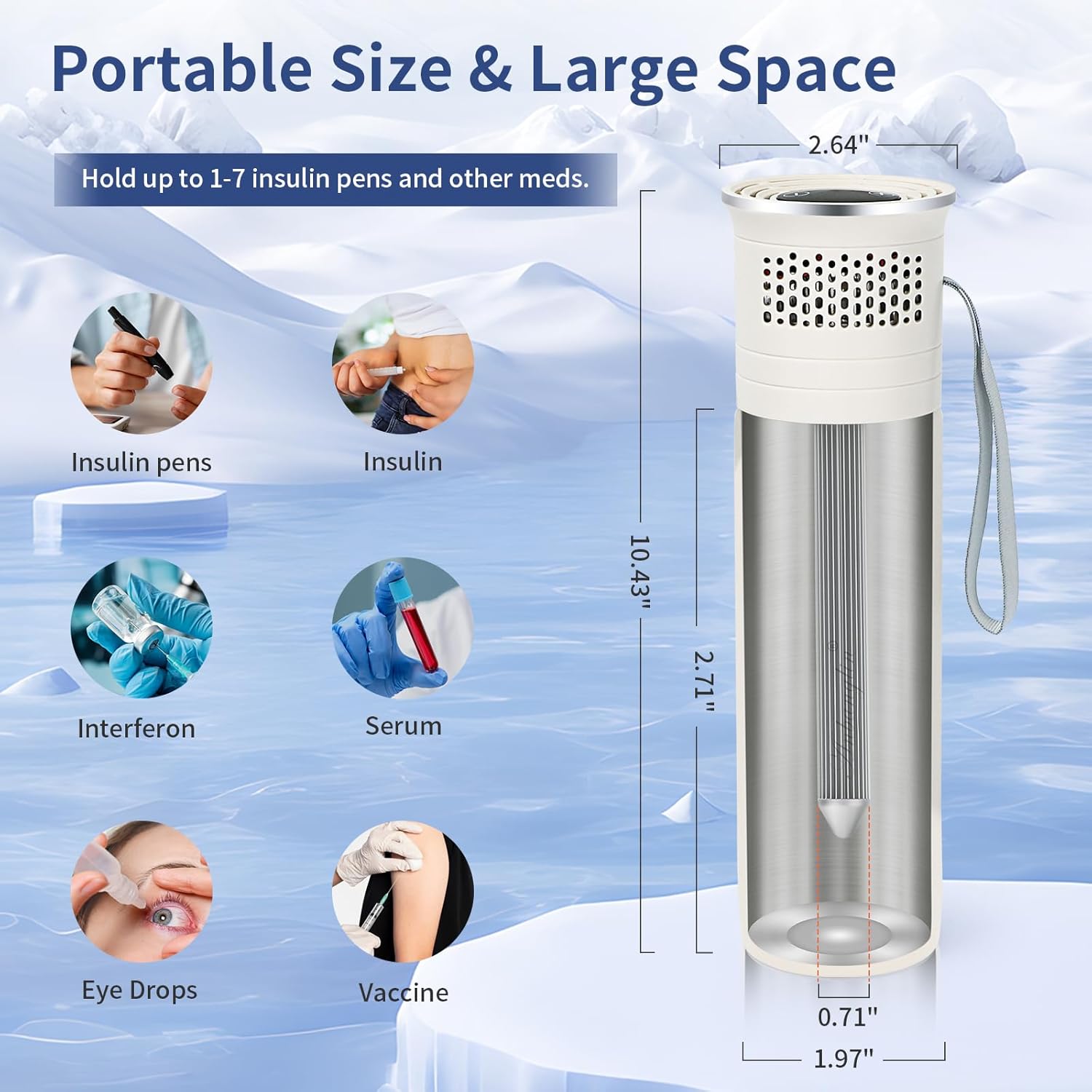 - Premium Vacuum Insulation: Constructed with durable 18/8 (304) food-grade stainless steel and double-wall vacuum insulation design, this refrigerated medicine travel case effectively blocks external heat while providing impact-resistant protection. Whether you're commuting, traveling long distances, or enjoying outdoor adventures, this rugged medicine cooler maintains safe temperatures for your vital medications.