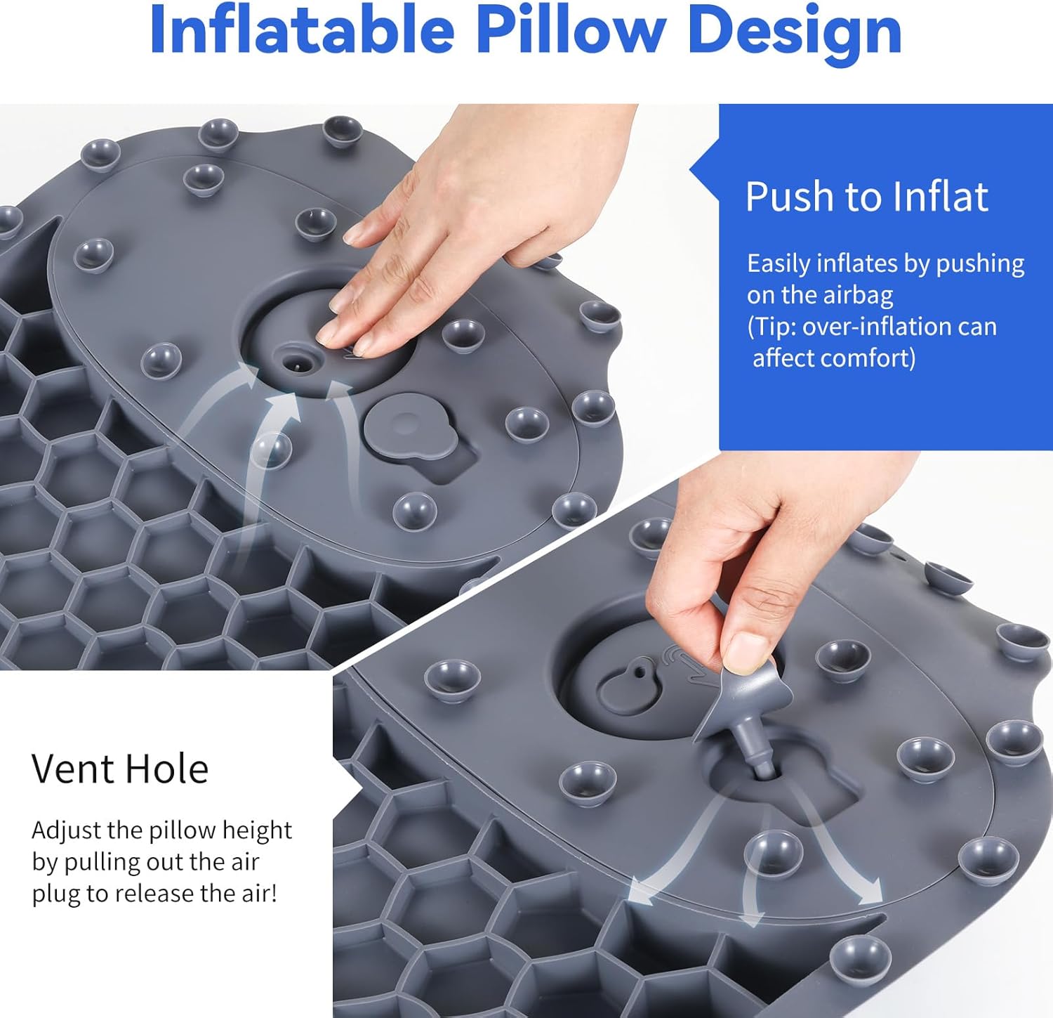 - [FLEXIBLE INFLATABLE BATH PILLOW]: This silicone bathtub pillow is ergonomically designed with a press-fit inflatable pillow design, which allows you to adjust the height of the bath pillow by releasing the gas to achieve a comfortable height; the flexible airbag bath tub pillow better supports your head and neck! (Tip: It is recommended not to over-inflate, it will affect the comfort level)