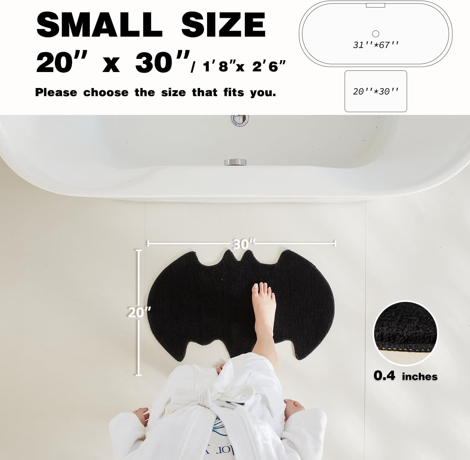 - Soft and Absorbant: This bat-shaped bathroom rug is crafted from soft microfiber fabric, offering an extra plush and comfortable feel underfoot. It effortlessly absorbs dripping water from your feet when you step out of the bathtub or shower.Keeping your bathroom floor dry