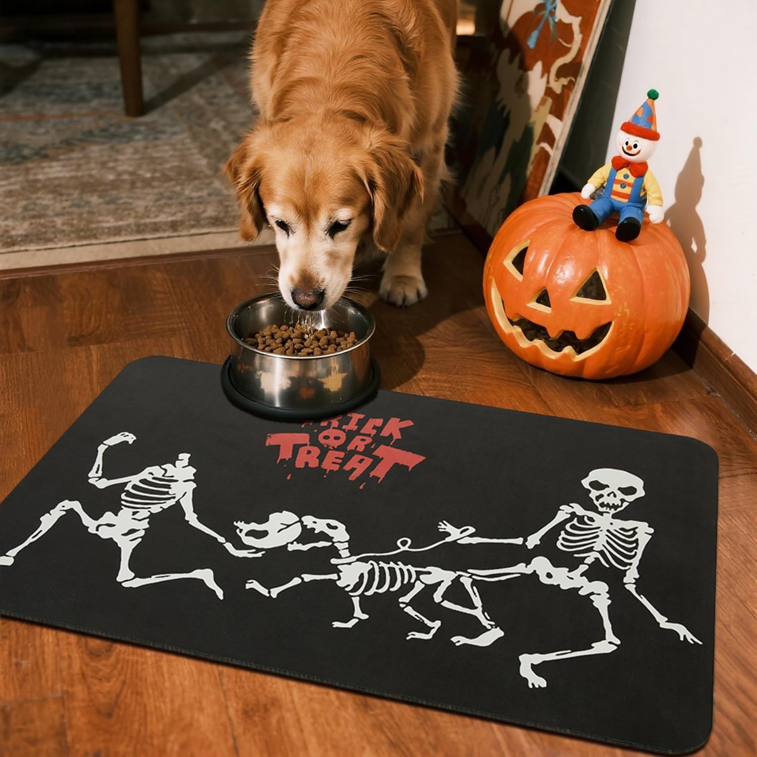 Halloween Bath Mat, Thin Halloween Bathroom Rug Non Slip Quick Dry Skeleton Bath Mat Fits Under Door Thin Floor Mat Halloween Decor, 24''x36'', Skull Treat or Trick Black
