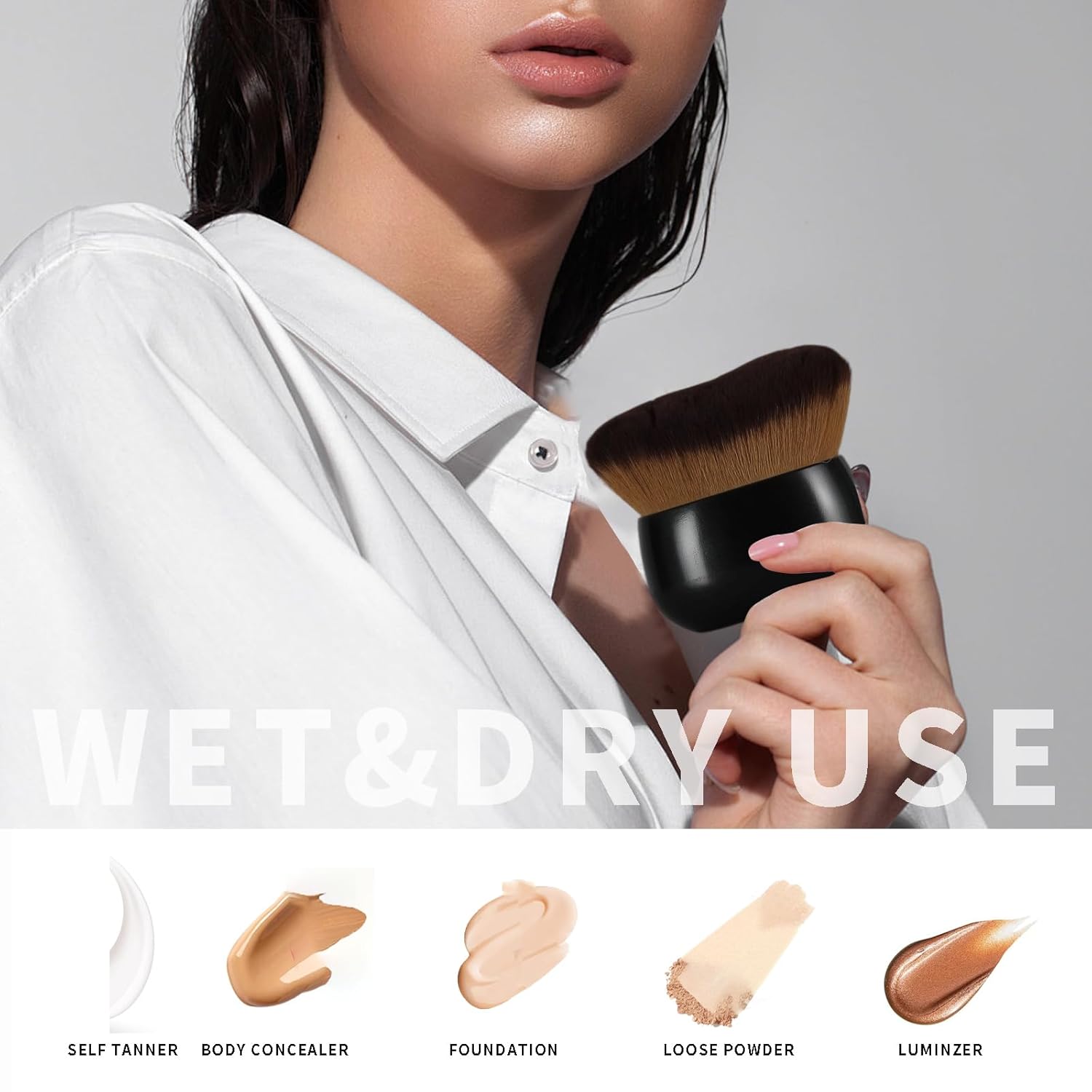 - 【Luxuriously Soft & Hygienic Bristles】Indulge in the Extra-Large 75mm Kabuki Body Makeup Brush in Black.Its luxuriously soft bristles caress skin like a cloud, ensuring seamless, streak-free application of body makeup.Its luxuriously soft vegan synthetic bristles caress skin while ensuring top-tier hygiene. Perfectly sized to cover large areas effortlessly, this brush blends comfort, functionality, and elegance in one stunning tool.