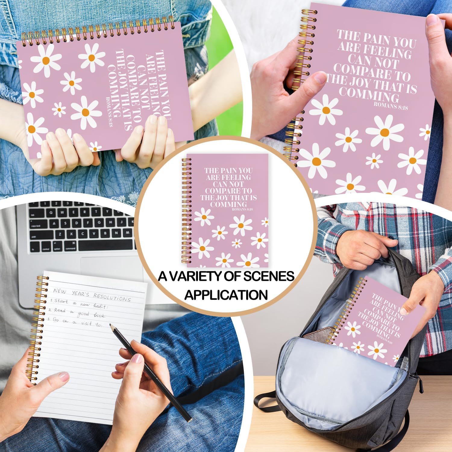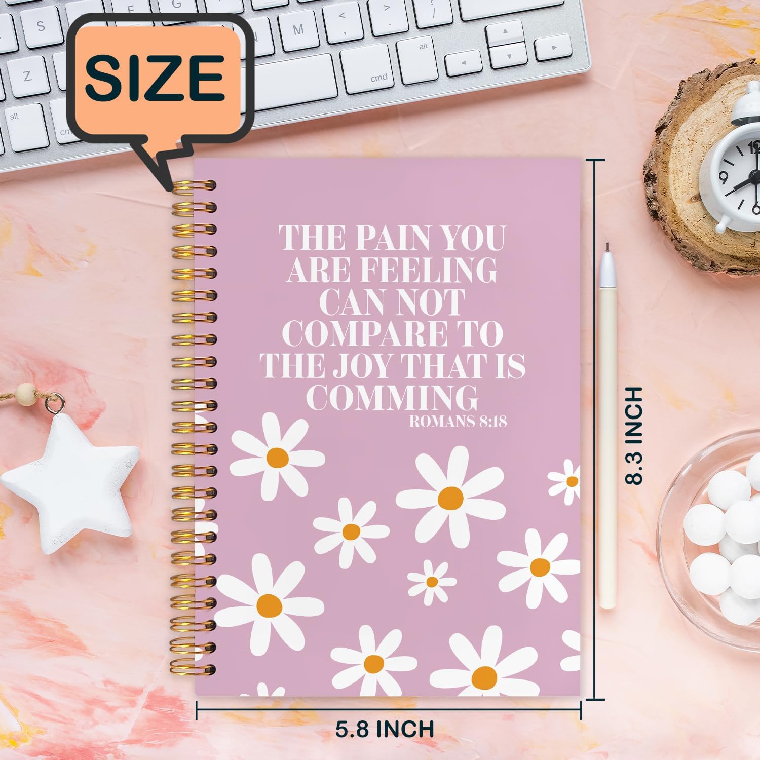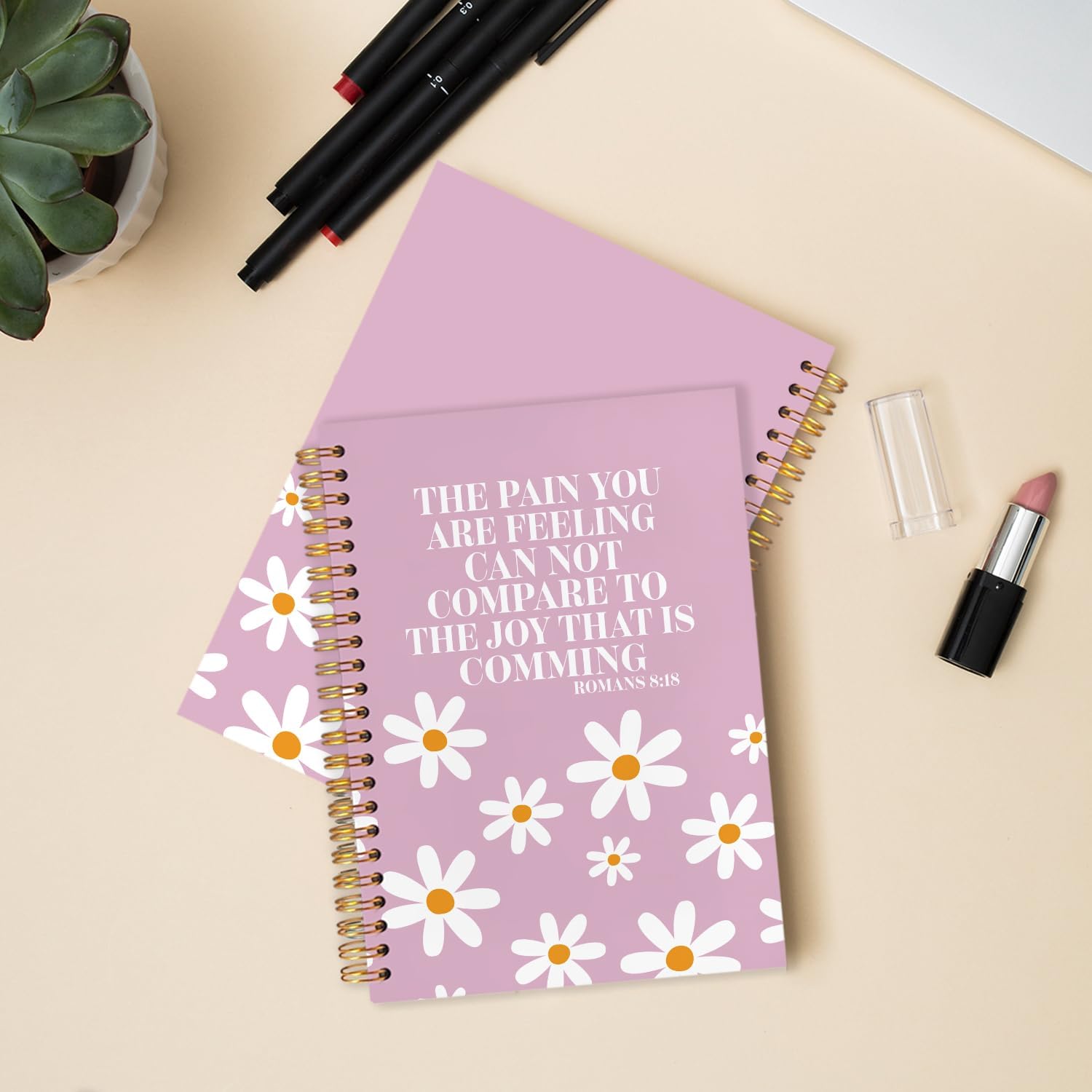 Pink Floral Christian Spiral Journal Notebook 5.5x8.3in, Romans 8:18 Bible Scripture Journal, Inspirational Christian Notebooks for Note Taking, Religious Hardcover Notebook