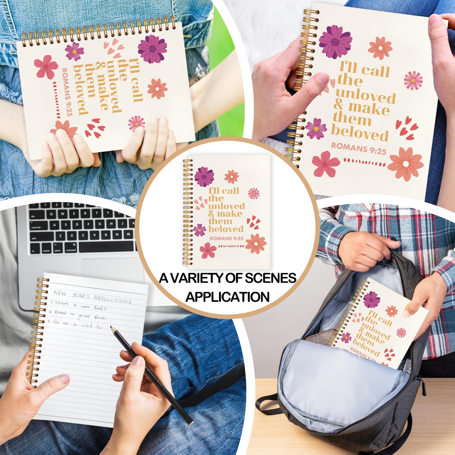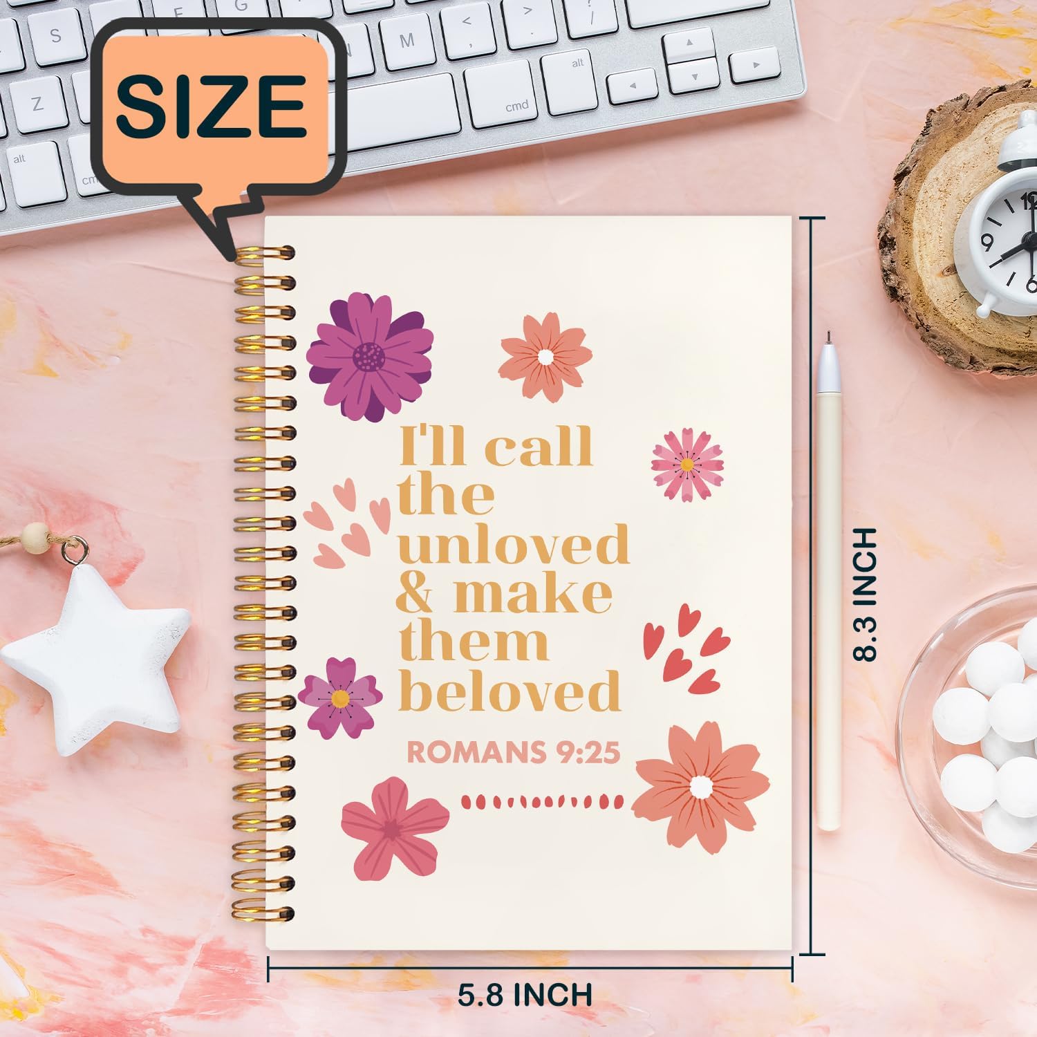 Floral Christian Spiral Journal Notebook 5.5x8.3in, Romans 9:25 Inspirational Bible Prayer Journal for Woman, Christian Gifts for Women Notebooks for Note Taking, Hardcover Notebook