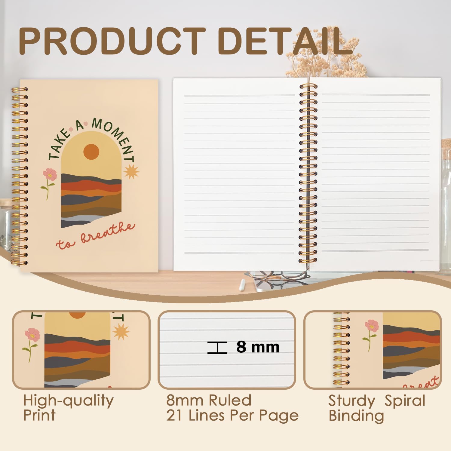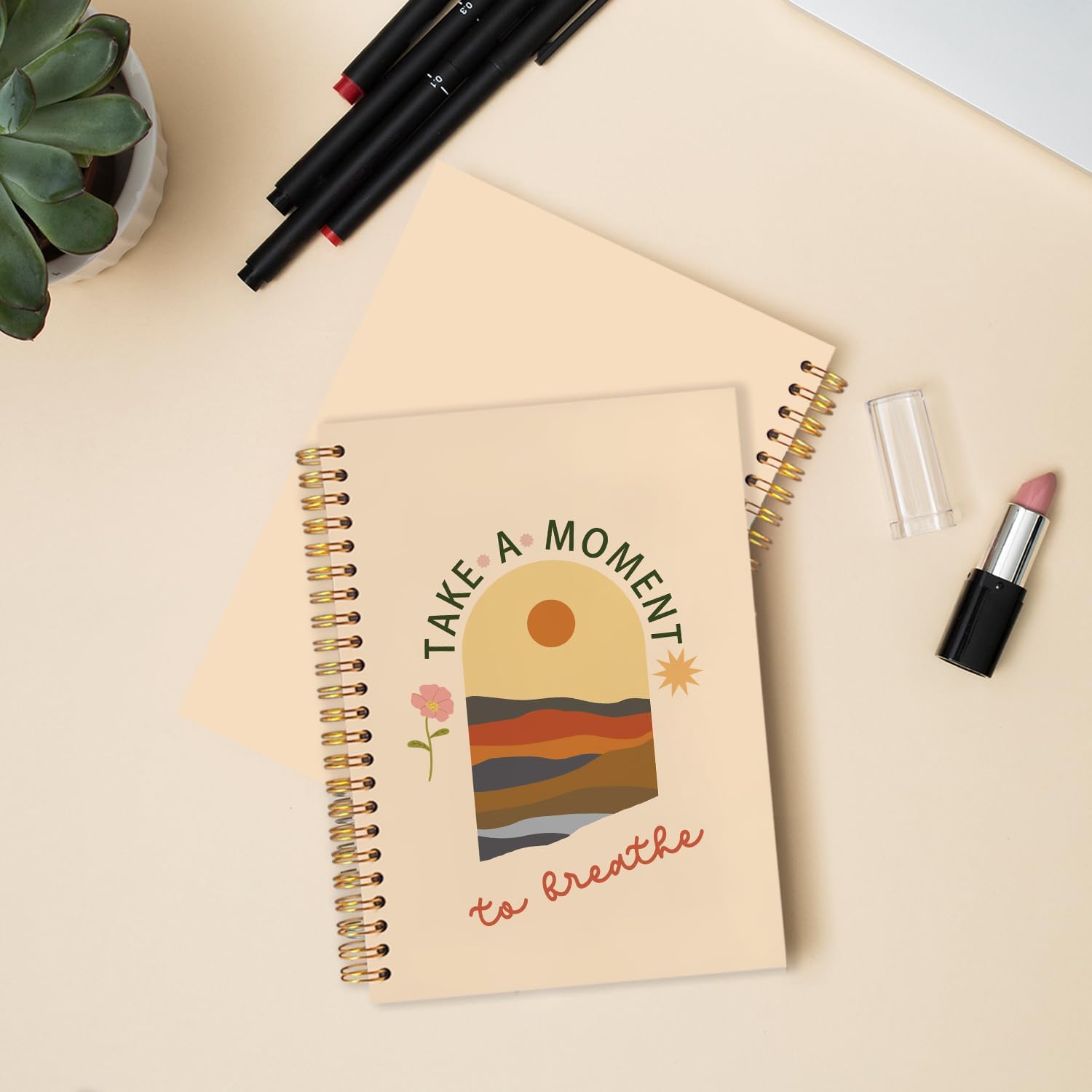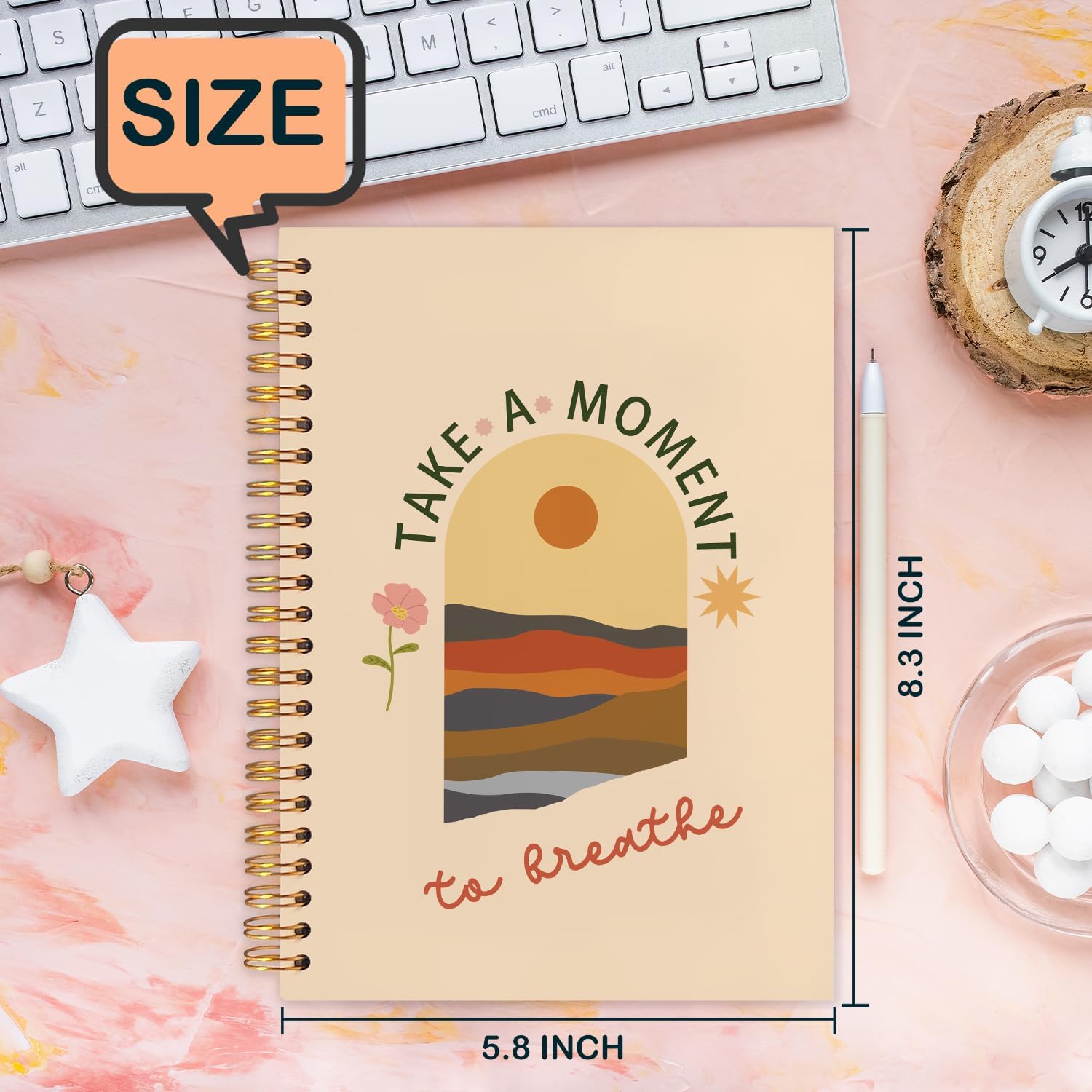 Boho Floral Mental Health Spiral Journal Notebook 5.5x8.3in, Take A Moment to Breathe Inspirational Notebooks for Note Taking, Therapy Office Must Haves, Hardcover Notebook Journal