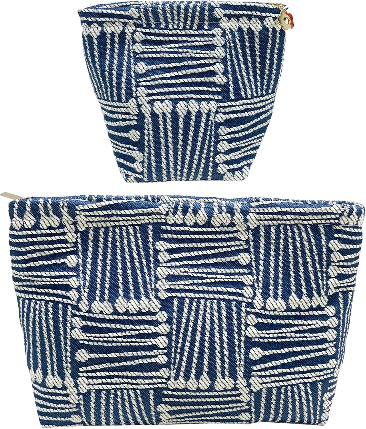 2 Pcs Makeup Bags, Large Cosmetic Bag Travel Toiletry Bag Organizer for Women, Embroidery Craft, Stripe Makeup Bag Small Cosmetic Pouch Purse with Zipper Gifts for Girls Teen
