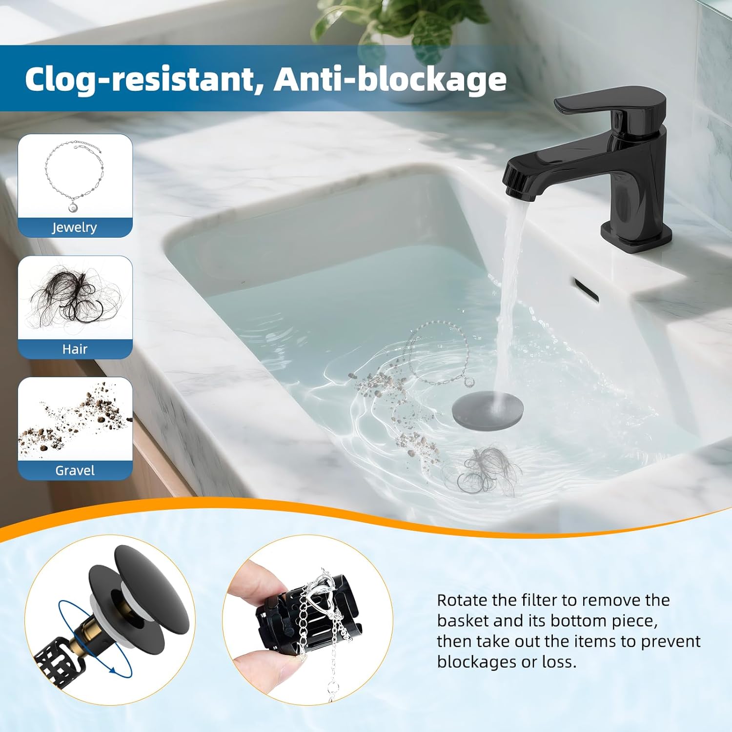 - [Easy Installation and Maintenance] The installation is quick and hassle-free, simply remove your old stopper and insert the new one into the drain hole, installation only takes a few seconds. Cleaning is just as easy. The dual-layer removable basket can be easily removed by simply twisting, allowing you to thoroughly clean all components of the drain stopper. The basket's detachable bottom design prevents the awkwardness and inconvenience of digging out items by hand