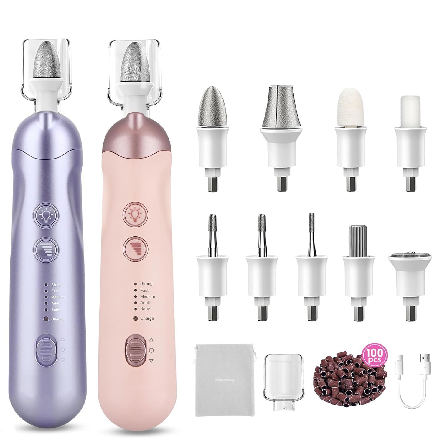 2 Pack Electric 9-in-1 Cordless Nail Drill with 100 Bits, 5 Speeds, Home & Salon Must-Have