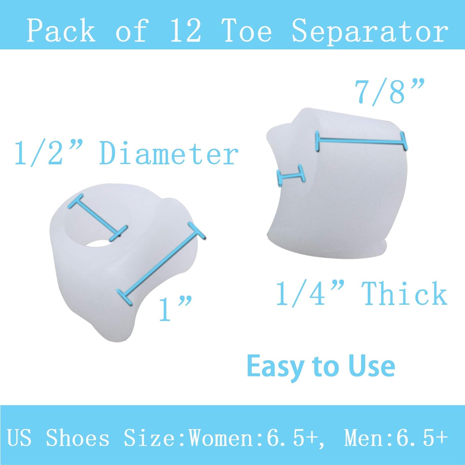 Pack of 12 Gel Toe Separator, (1/4" Thick) Big Toe Spacers, Single Loop Toe Spreader for Bunions, Overlapping Toe, Corrector and Spacer (White)