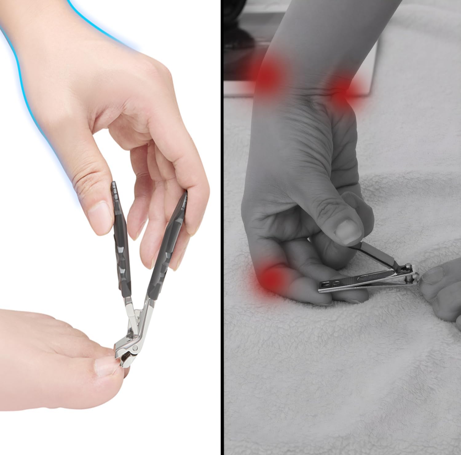 - Trim like a pro with our Precision Nail Clippers - Nail care made effortless. Our expertly crafted nail clippers boast an ergonomic design, engineered for seniors, allowing for clear visibility of every detail, ensuring precise and confident nail trimming. Say goodbye to awkward body contortions – our innovative design offers less bending and more comfort!