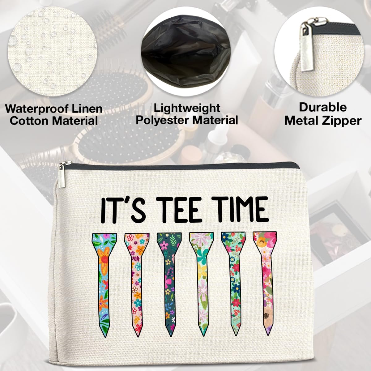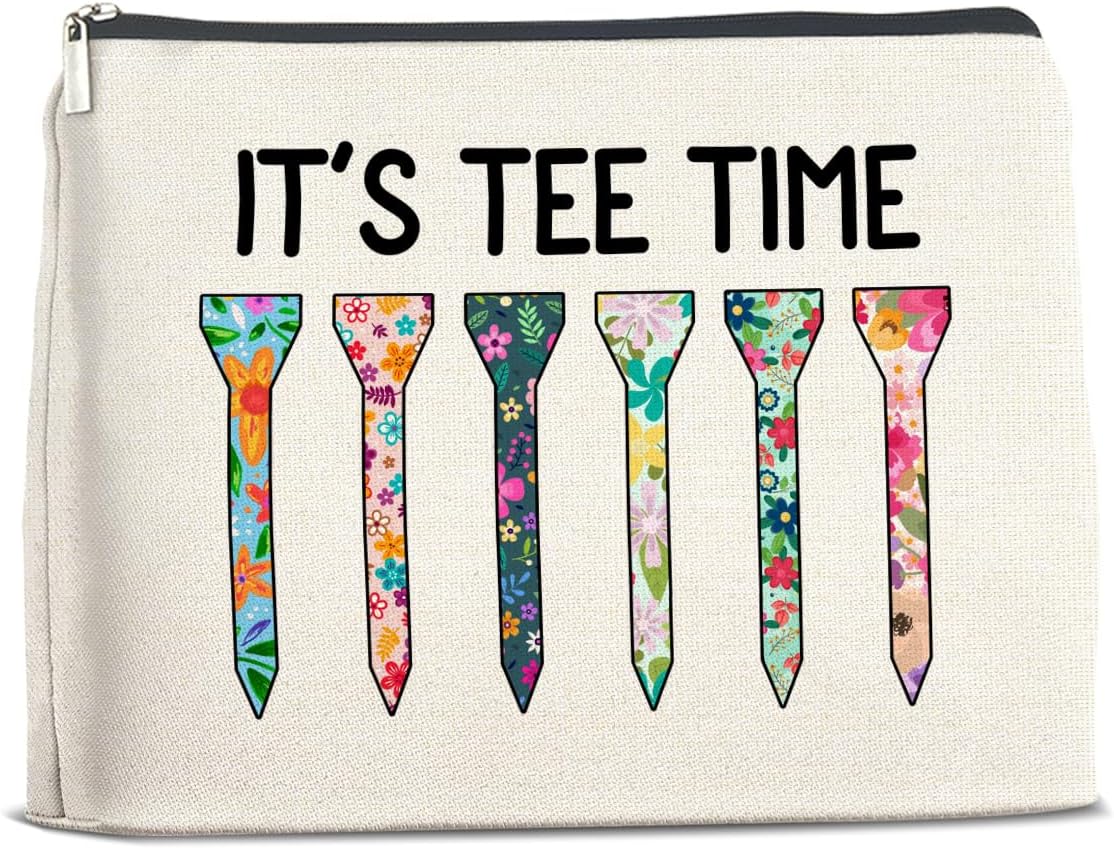 Golf Makeup Bag Gifts for Women Golfer Golf Lovers It's Tee Time Floral Cosmetic Bag Zipper Pouch